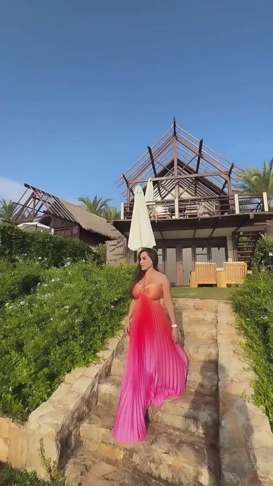 Summer Solid Color Tube Top Pleated Sleeveless Sling Dress