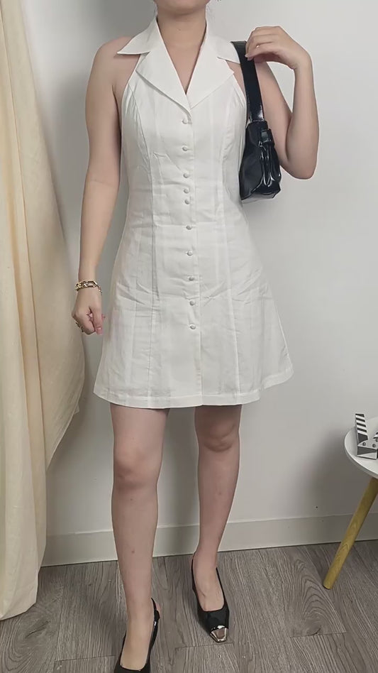 Cotton Linen Dress Halter Backless
