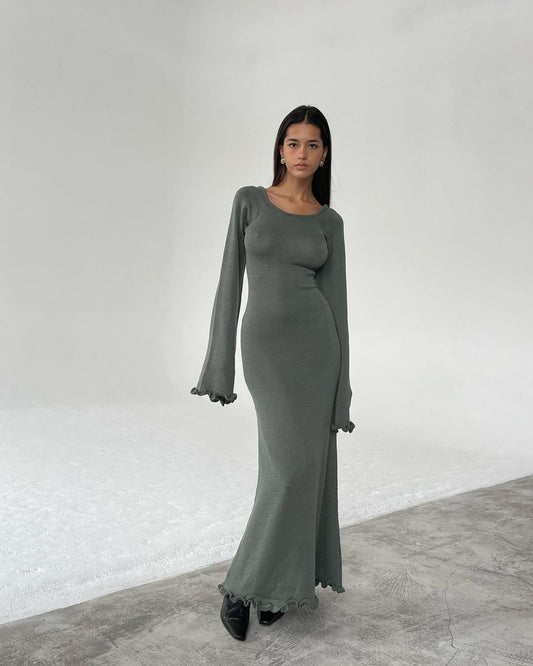 Backless Slim Fit Comfortable High Waist Lace Up Woolen Dress