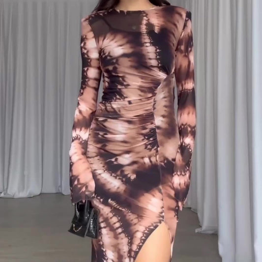 Solid Color Long Sleeve Slim Fit Slit Dress