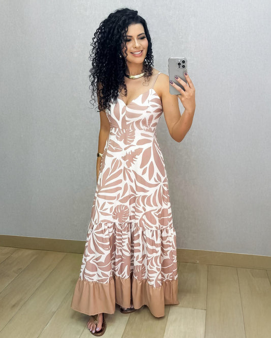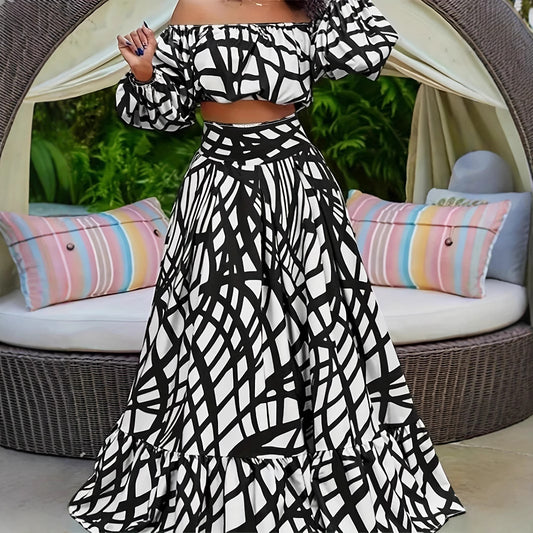 Backless Halter Top Slim Printed Dress Two Piece Set