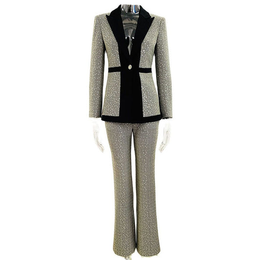 Loose-Fit Rhinestone Blazer and Trousers Set