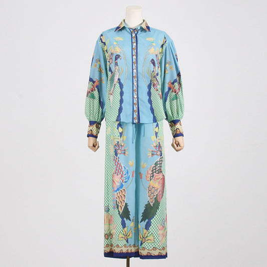 Satin Printed Two-Piece Set Wide-Leg Pants