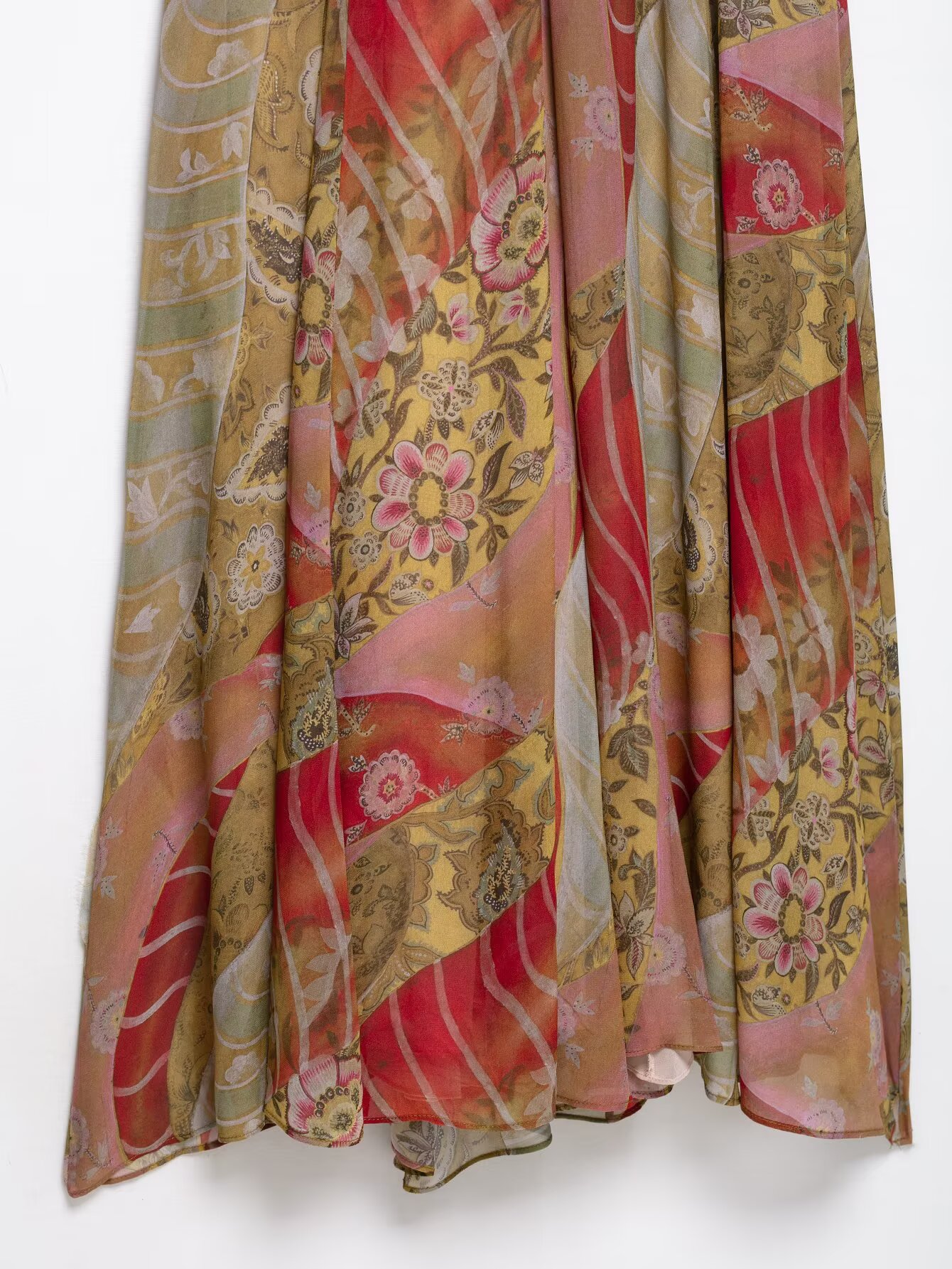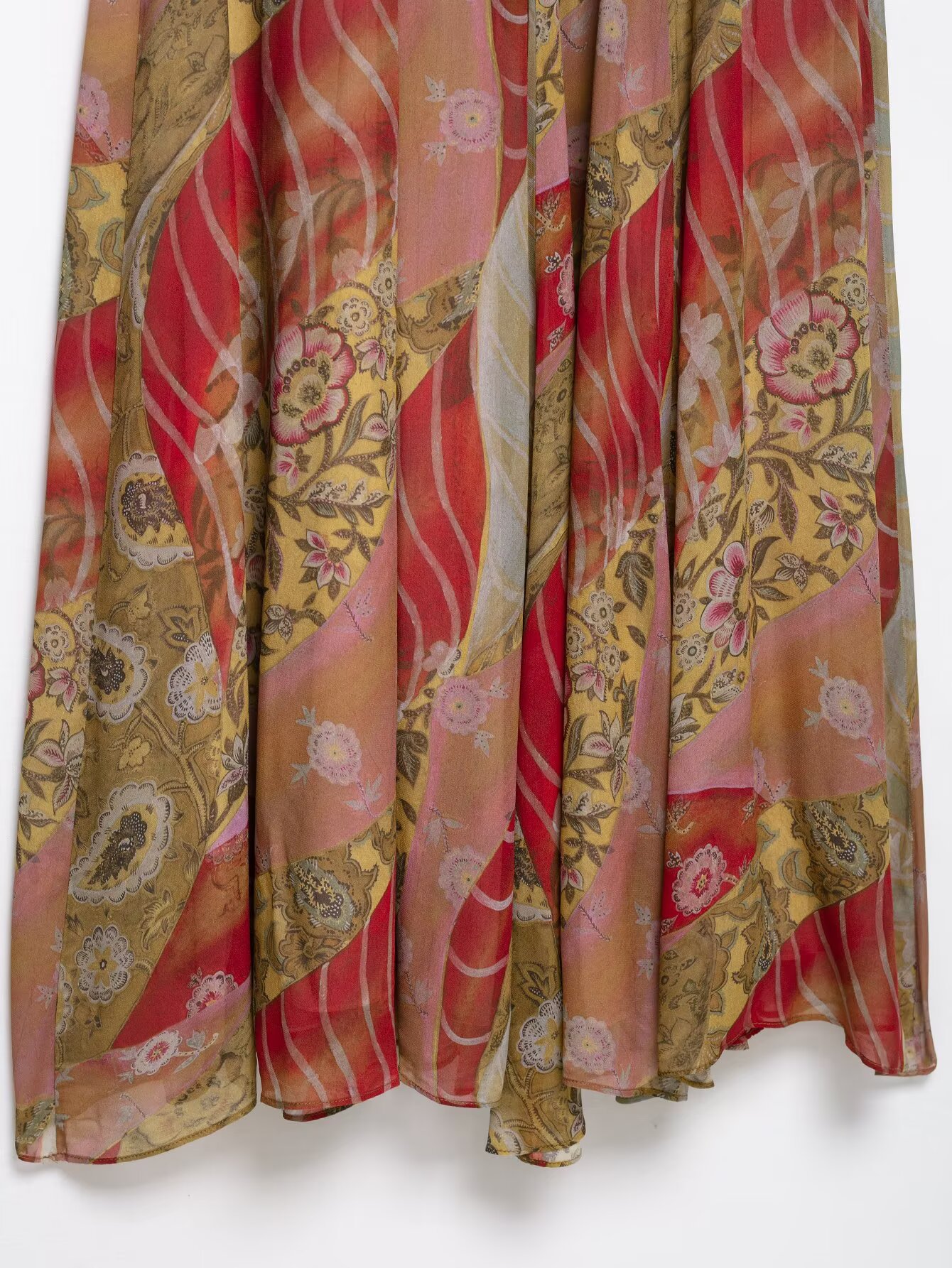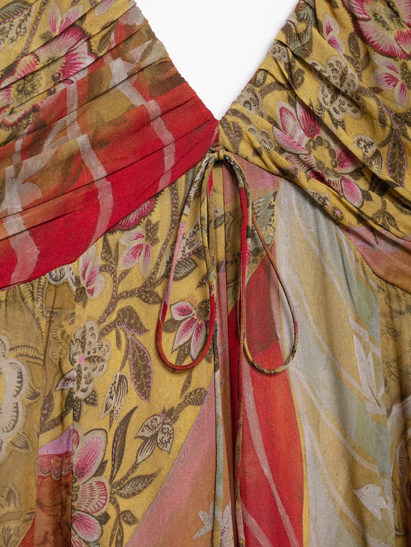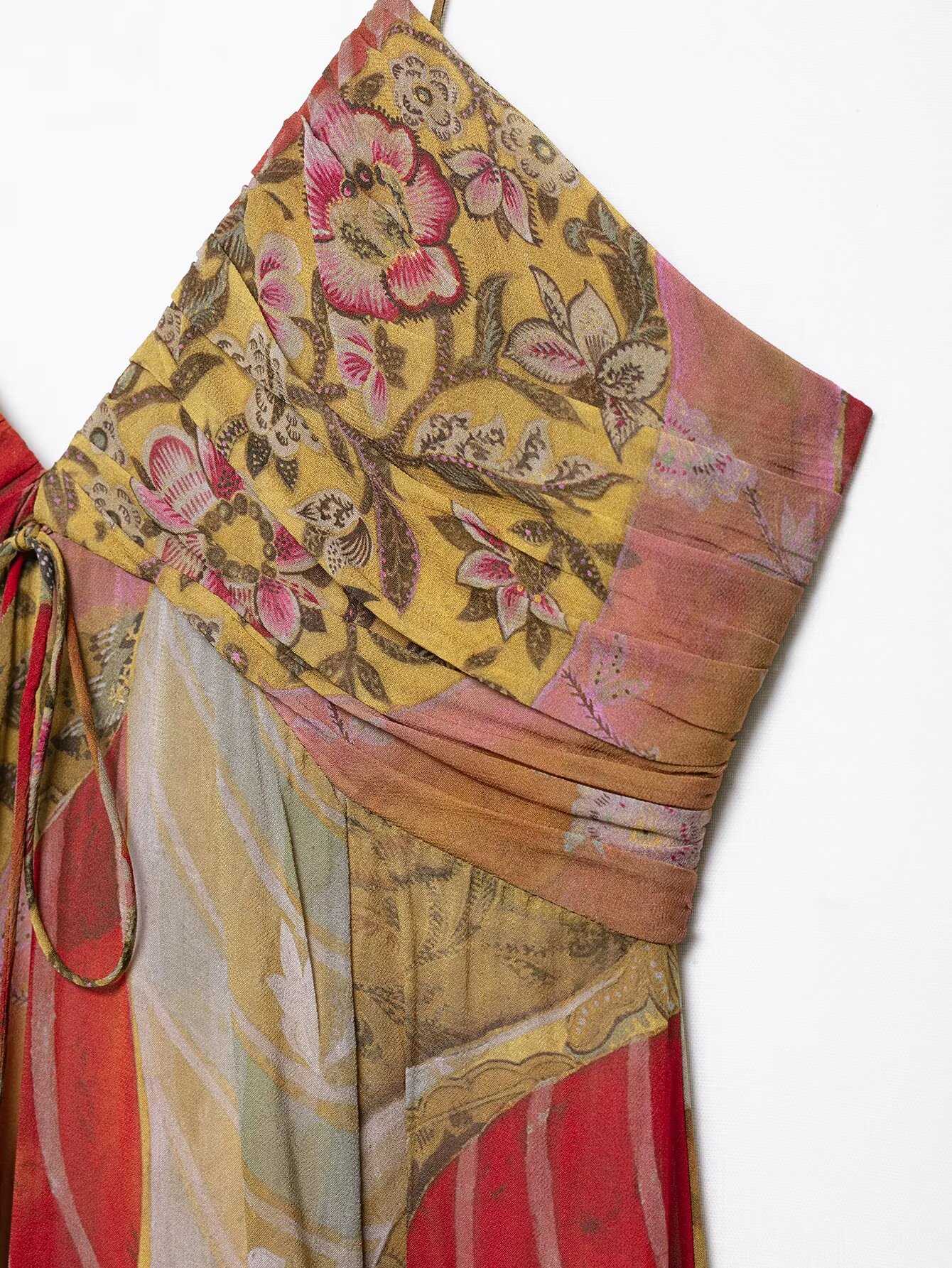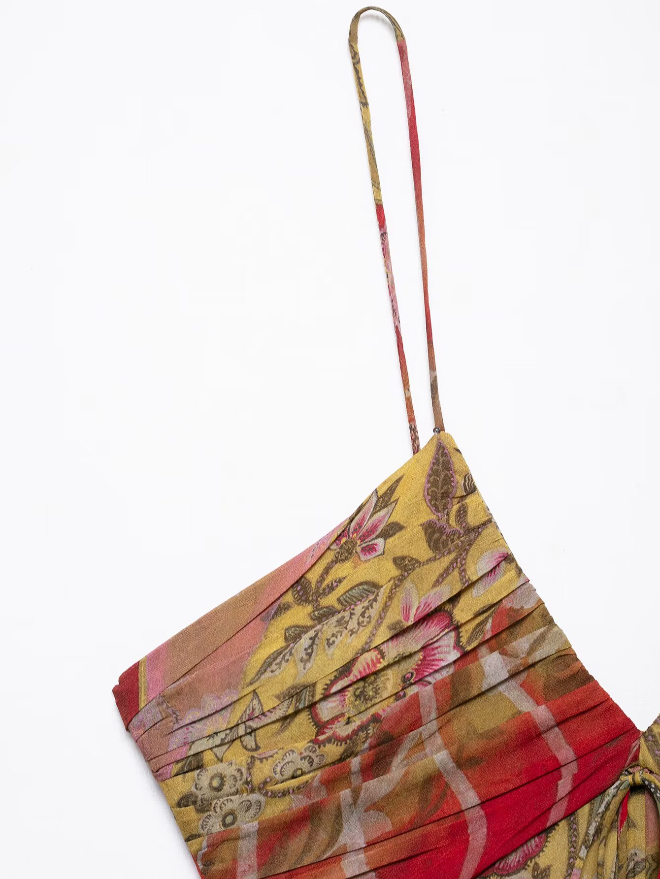 Boho Vacation Floral Maxi Dress – Slim Fit Cami Style with V-Neck, Ruched & Tie Details