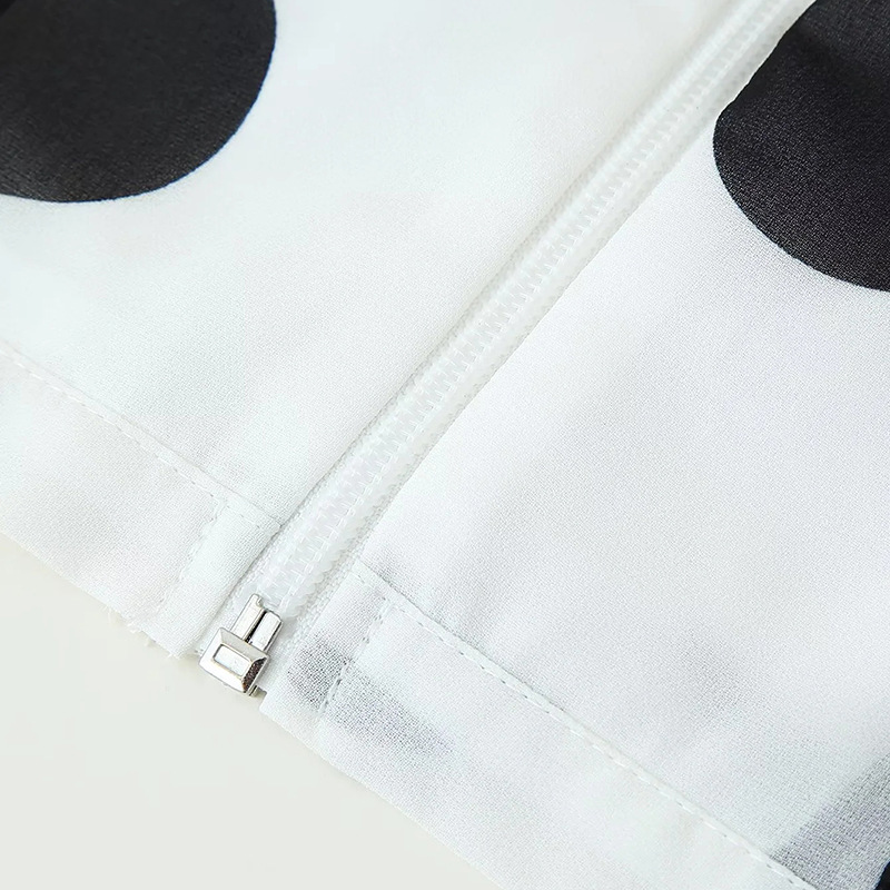 This elegant two-piece set features a slim fit crafted from lightweight polyester fabric. The stylish polka dot pattern adds a timeless charm, while the ruched detailing and zipper element create a modern, flattering silhouette. Designed with a halter neckline and sleeveless cut, the crop top pairs perfectly with the high-rise, flowing maxi skirt for a chic, sophisticated look. Ideal for warm weather, this summer outfit combines comfort and fashion effortlessly, making it a must-have addition to your seasonal collection.