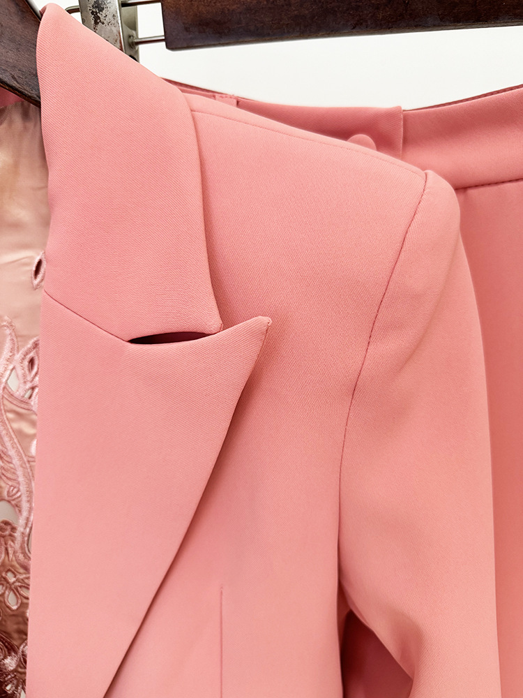 Heavy Embroidery Blazer Trousers Set Straight Leg