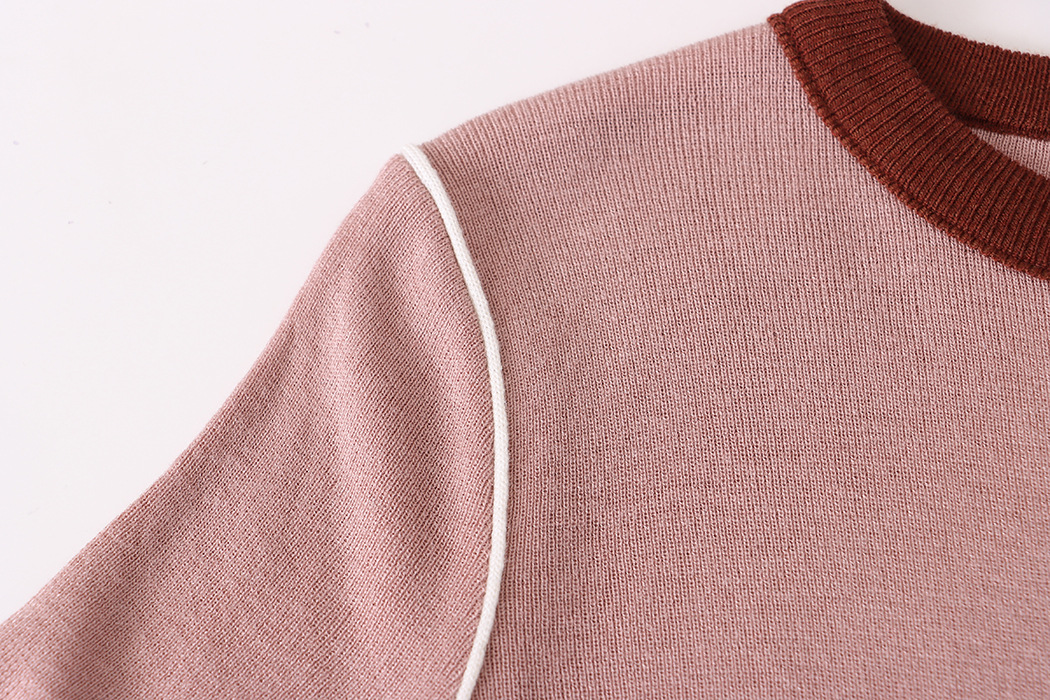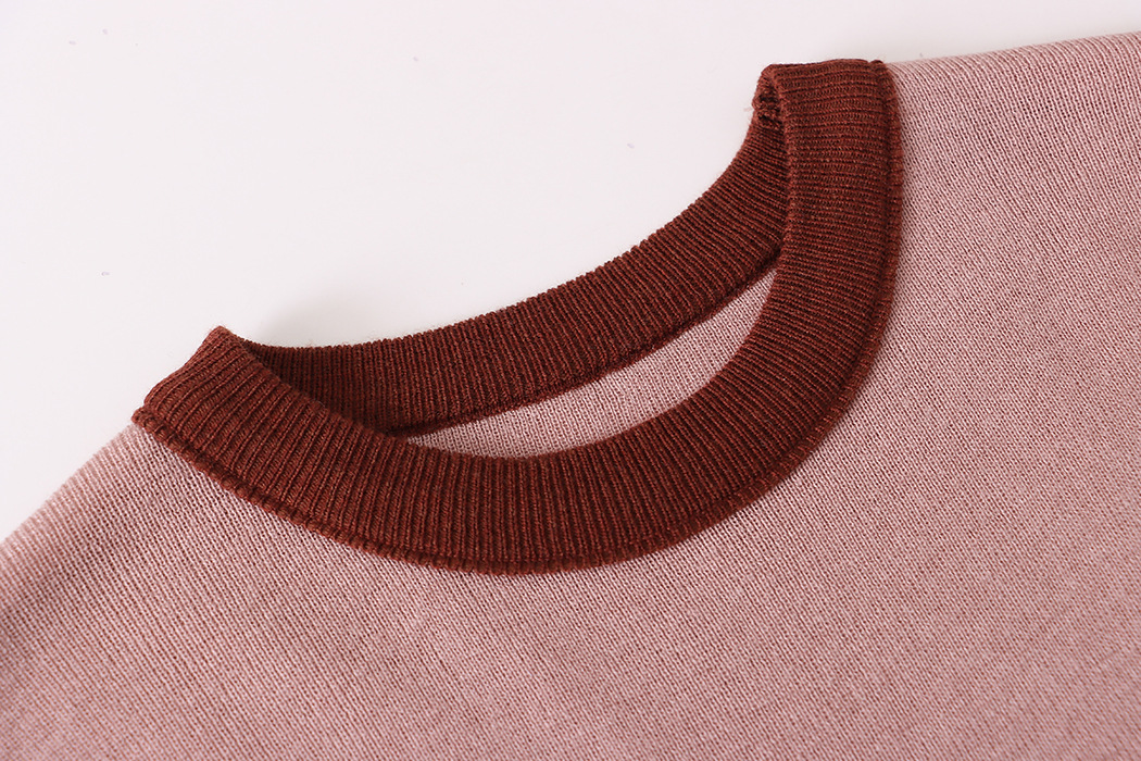 "Retro Contrast Color Round Neck Knitted Short Sleeve Top"