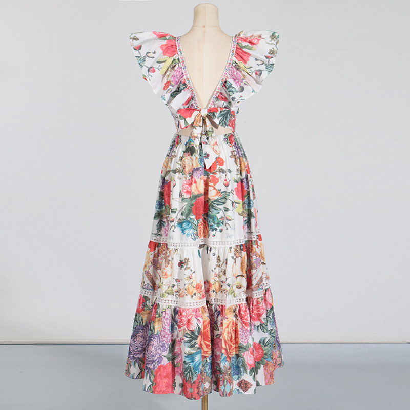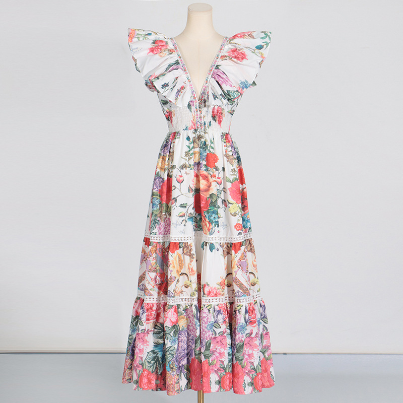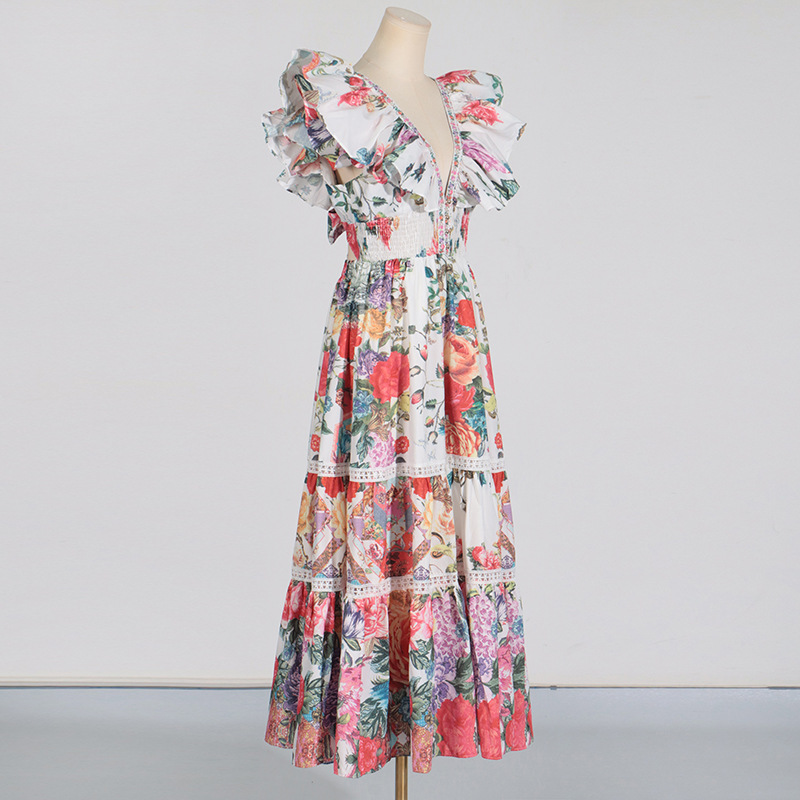 Ruffled Sleeve Floral Maxi Dress
