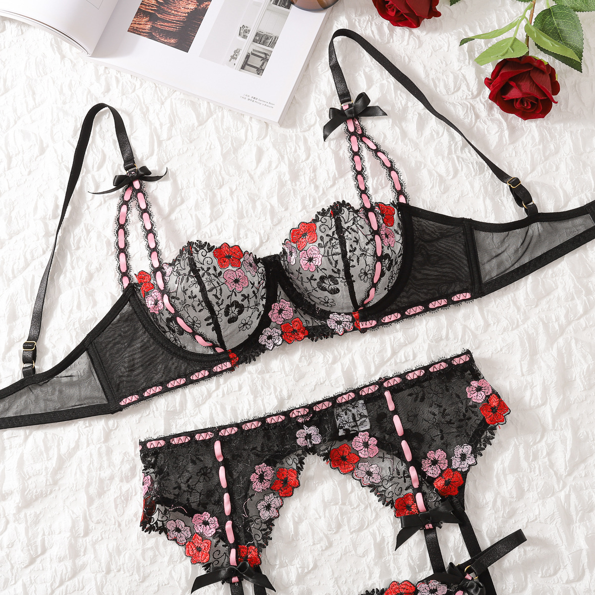 Element: Bow,Embroidery,Lace/Tulle/Fishnet,Tie