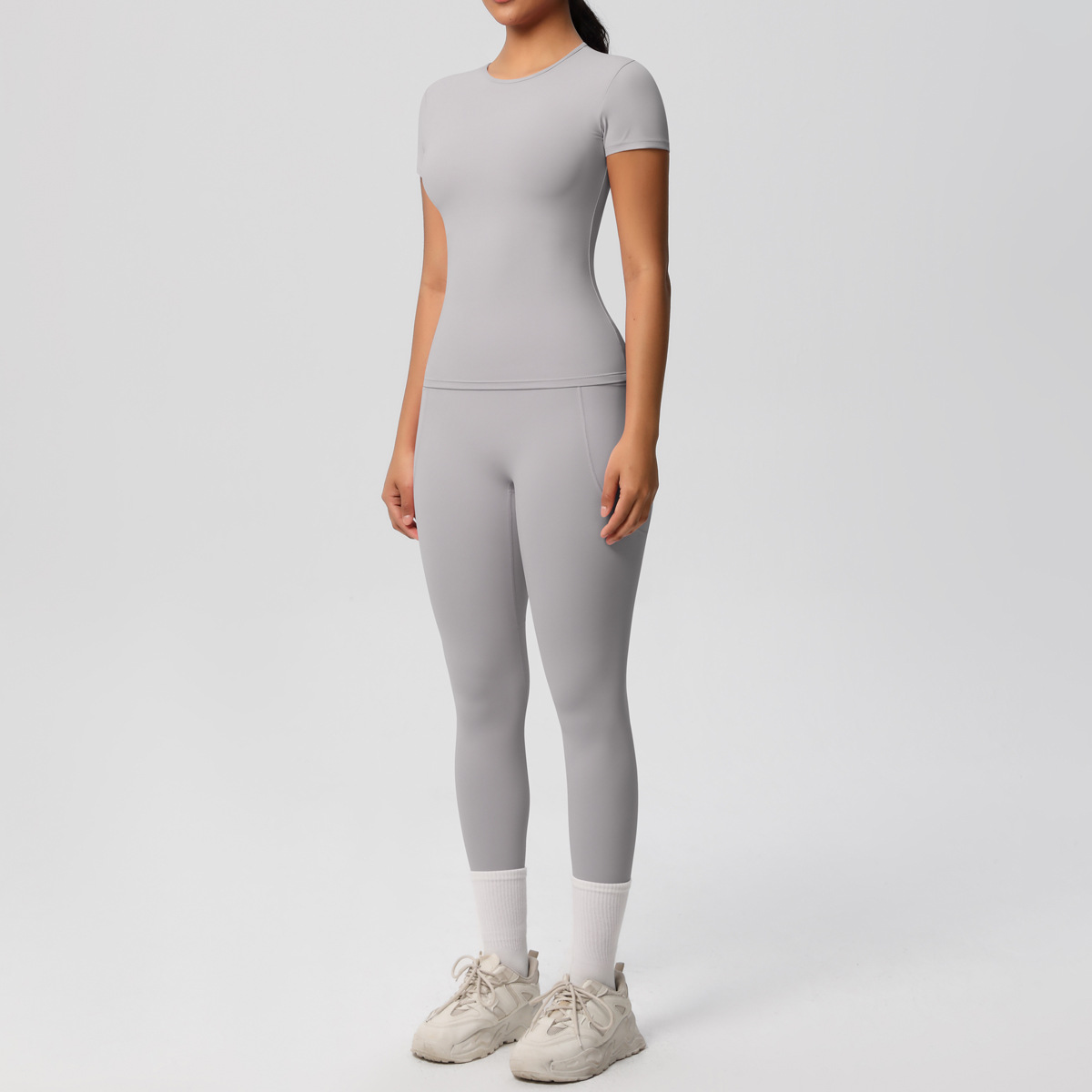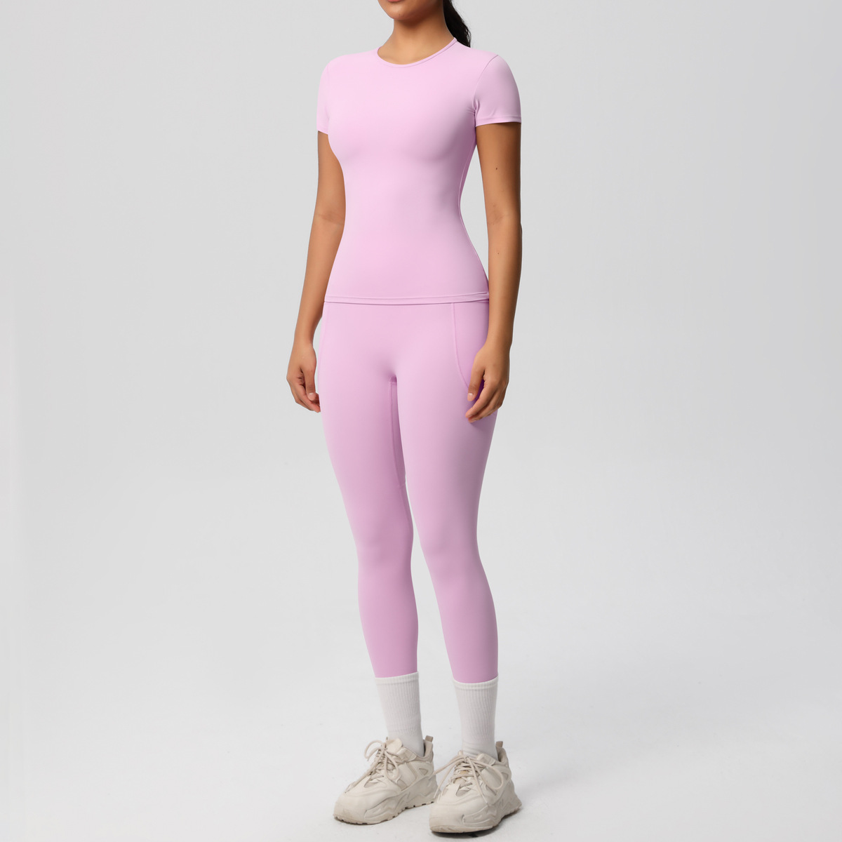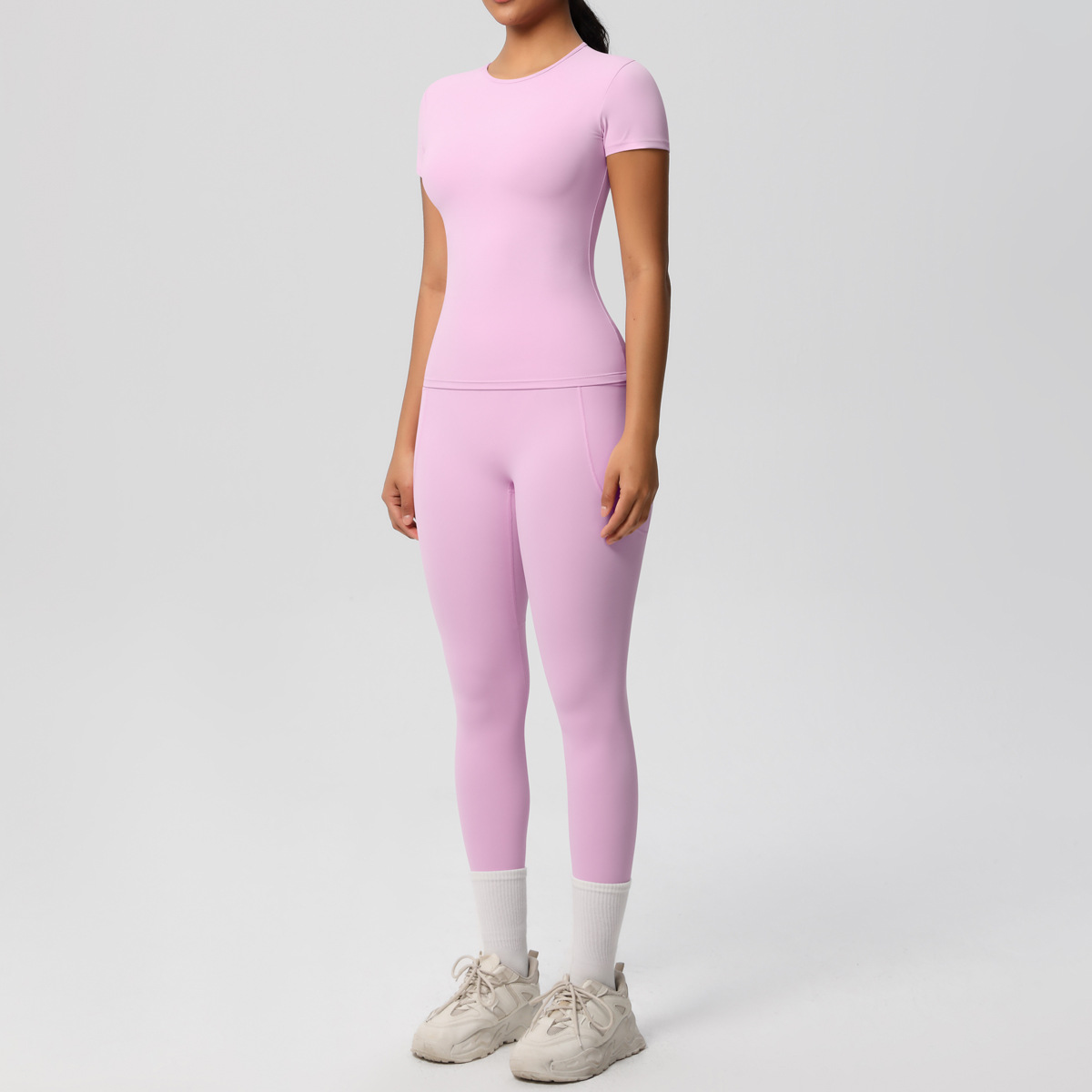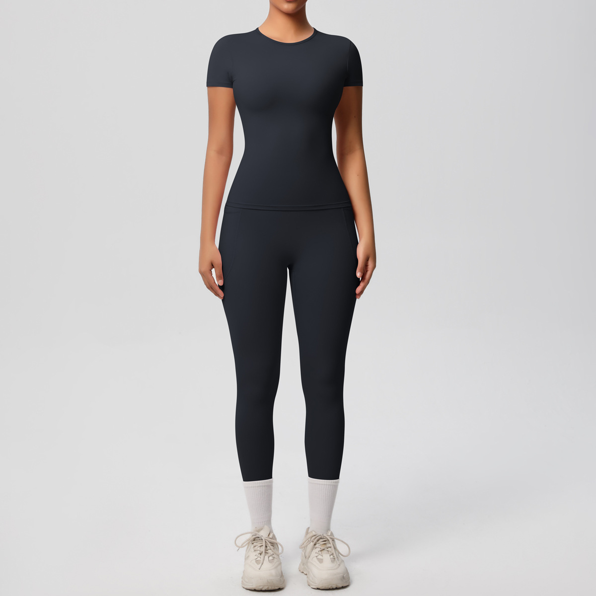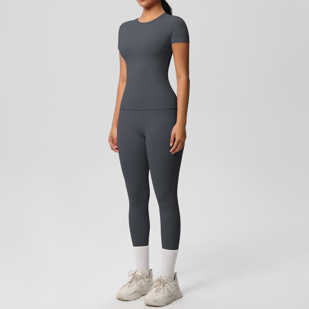 Solid Color Short Sleeve Skin Friendly Breathable Fitness Set