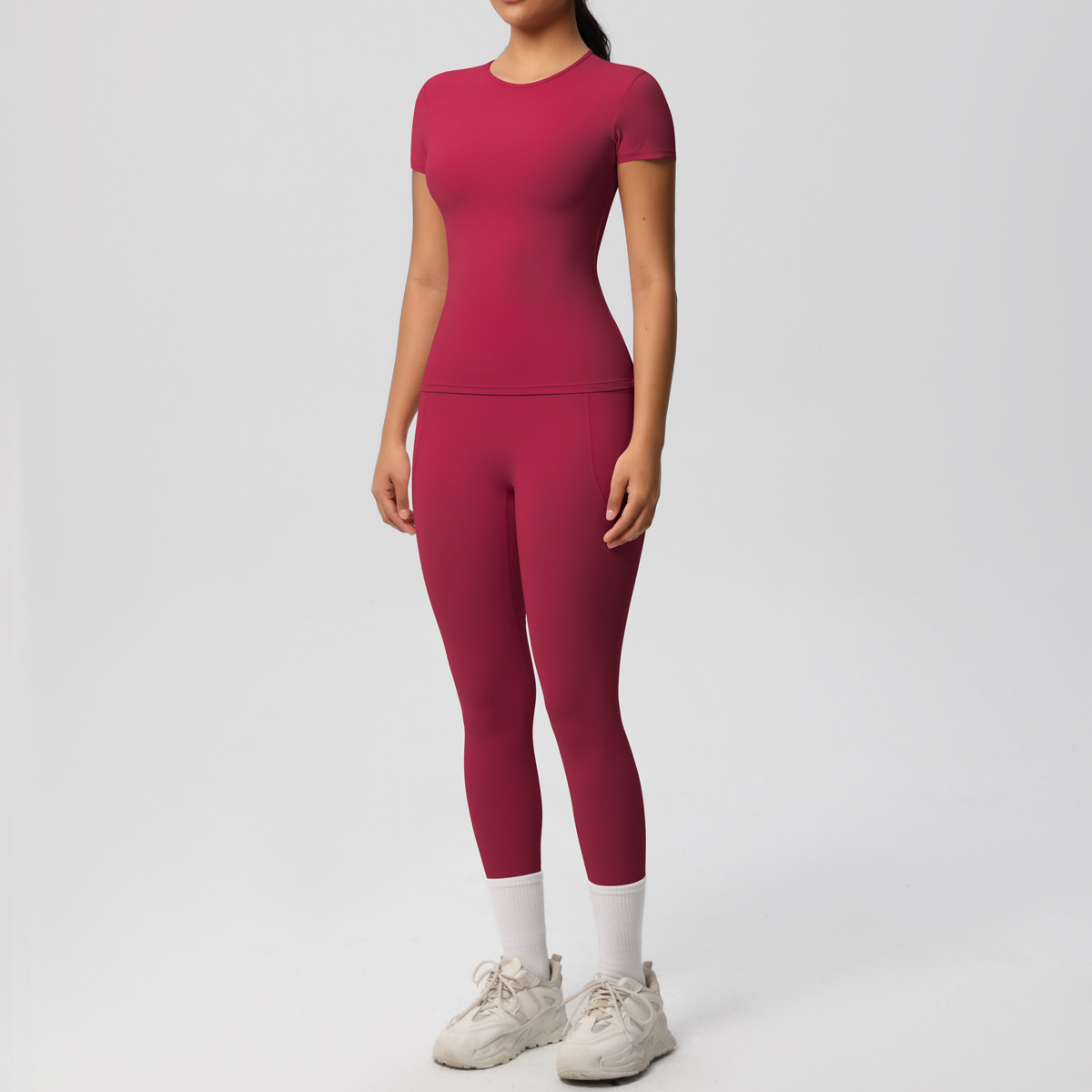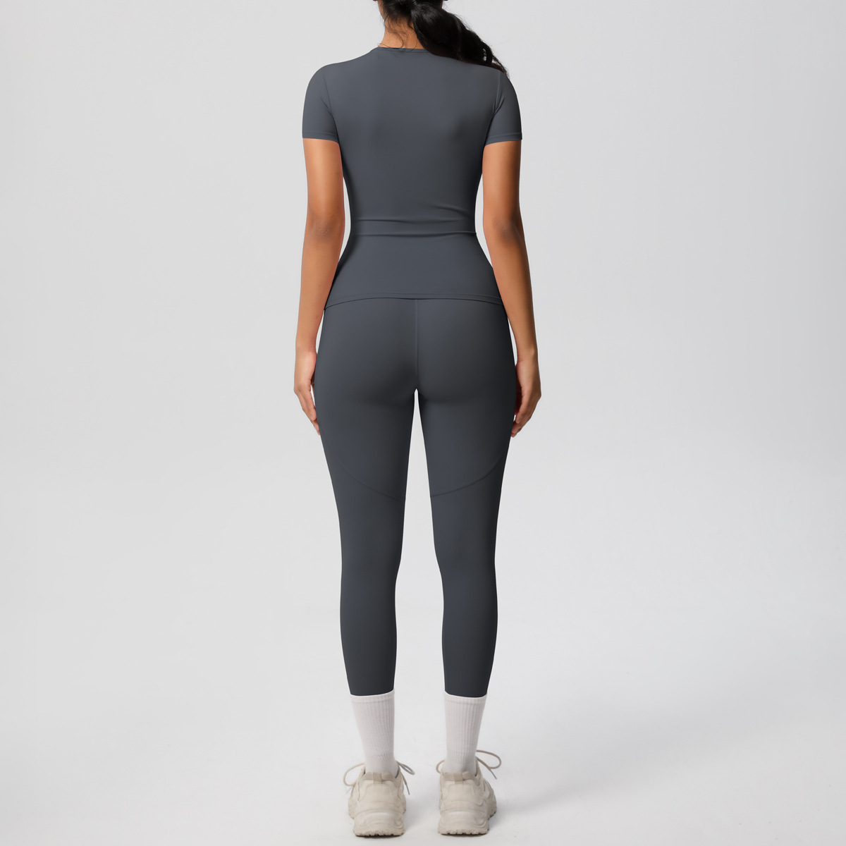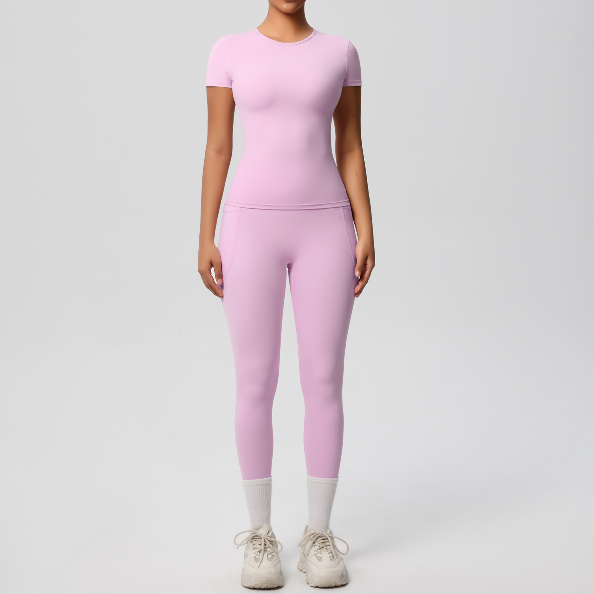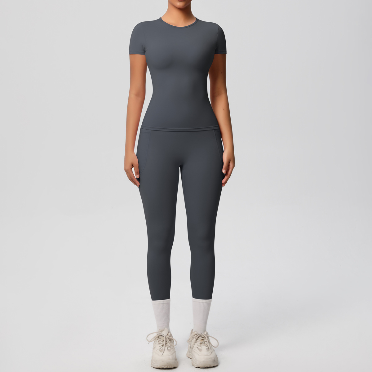 Solid Color Short Sleeve Skin Friendly Breathable Fitness Set