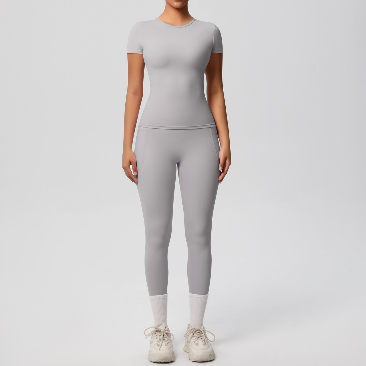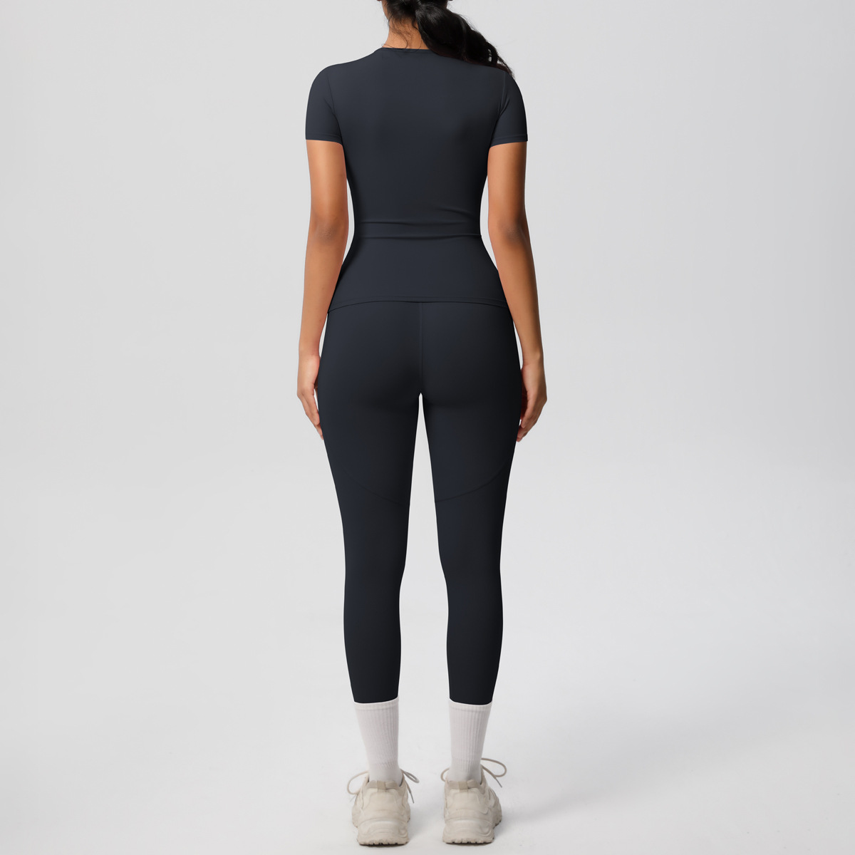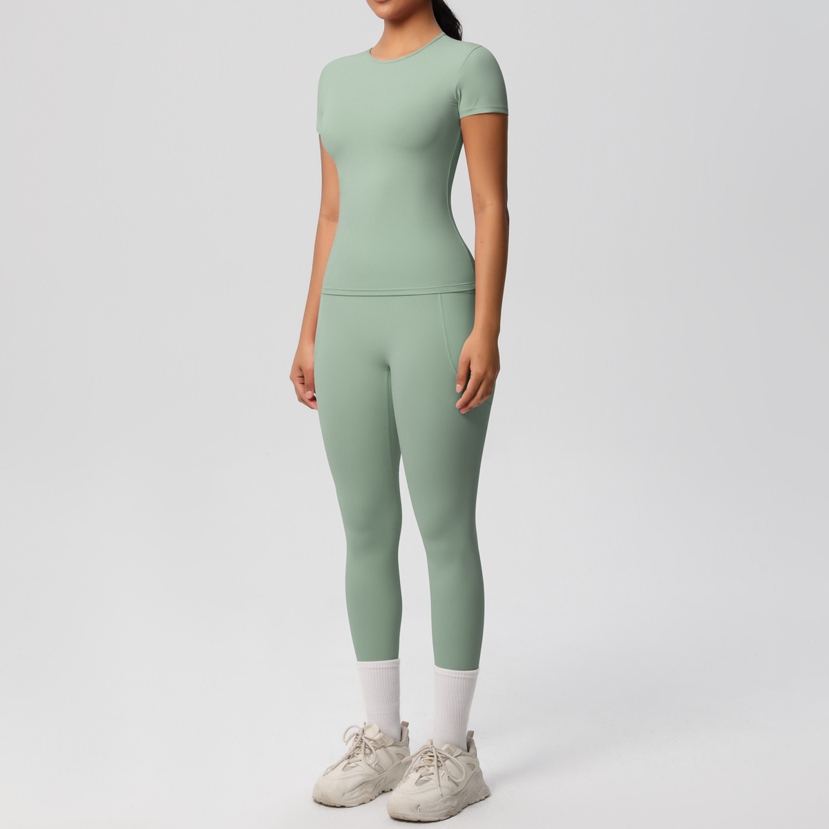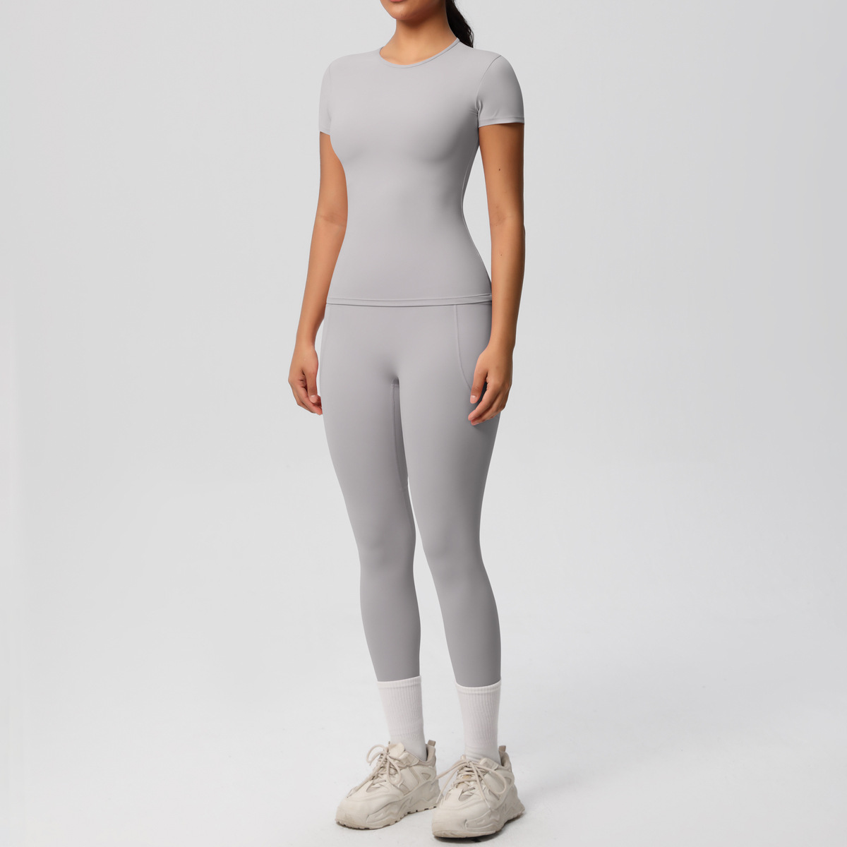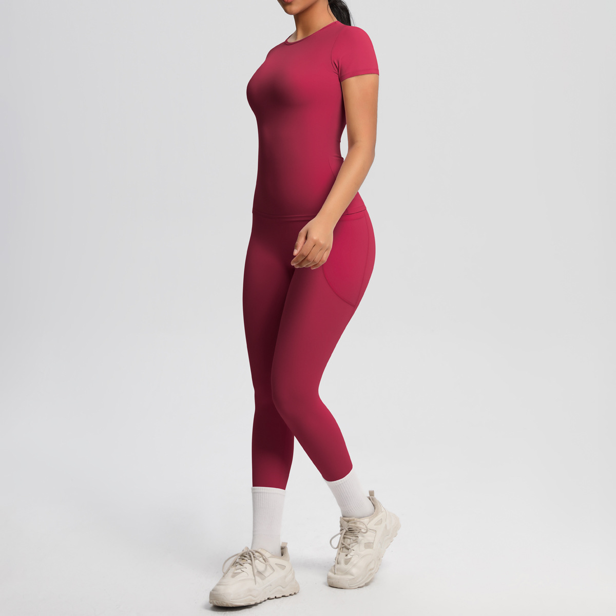 Solid Color Short Sleeve Skin Friendly Breathable Fitness Set