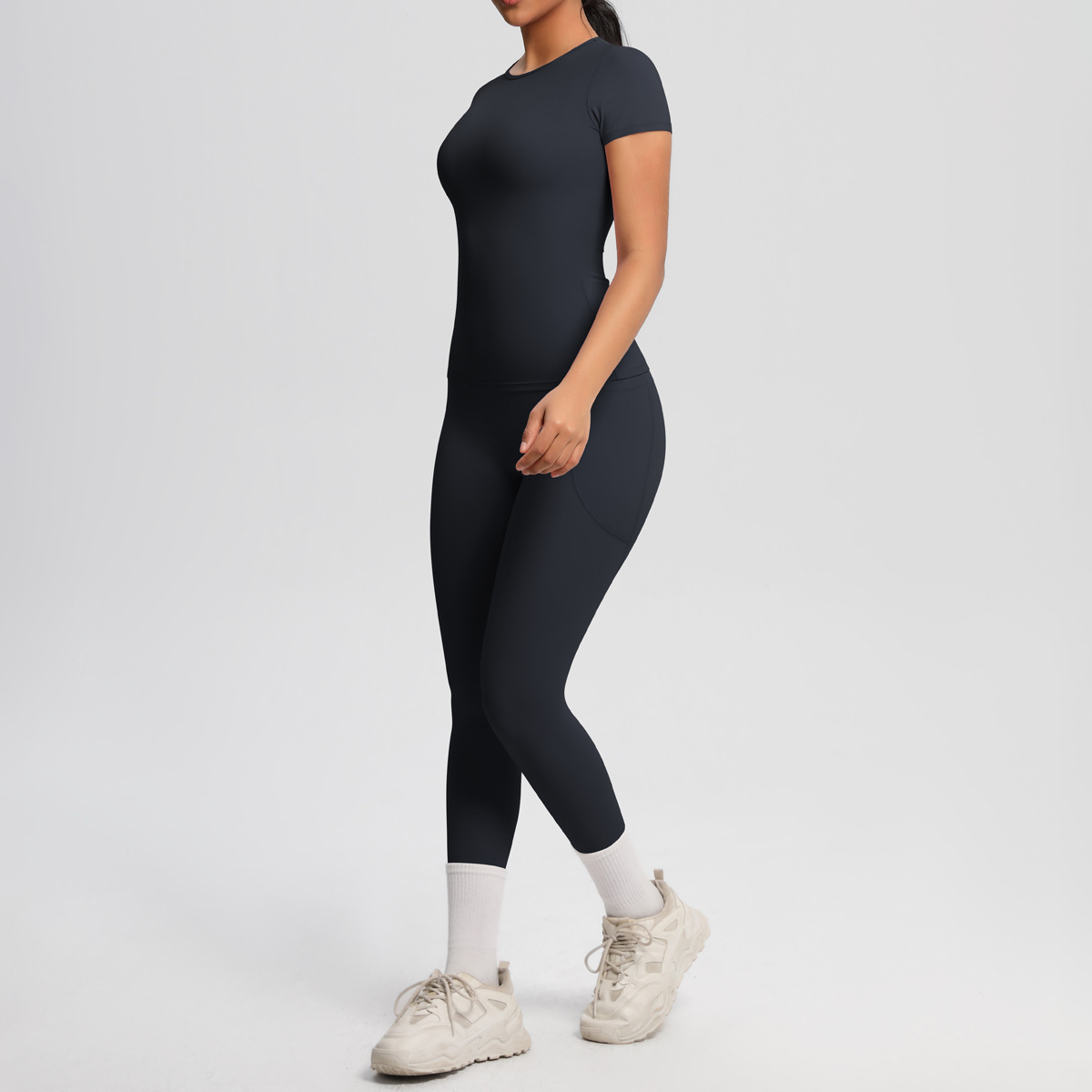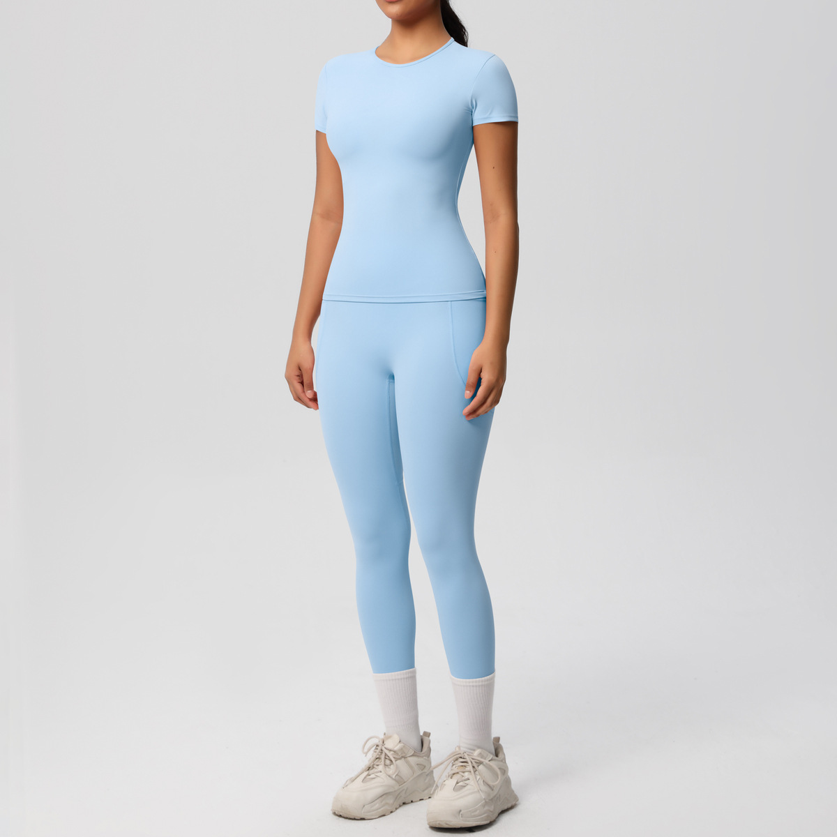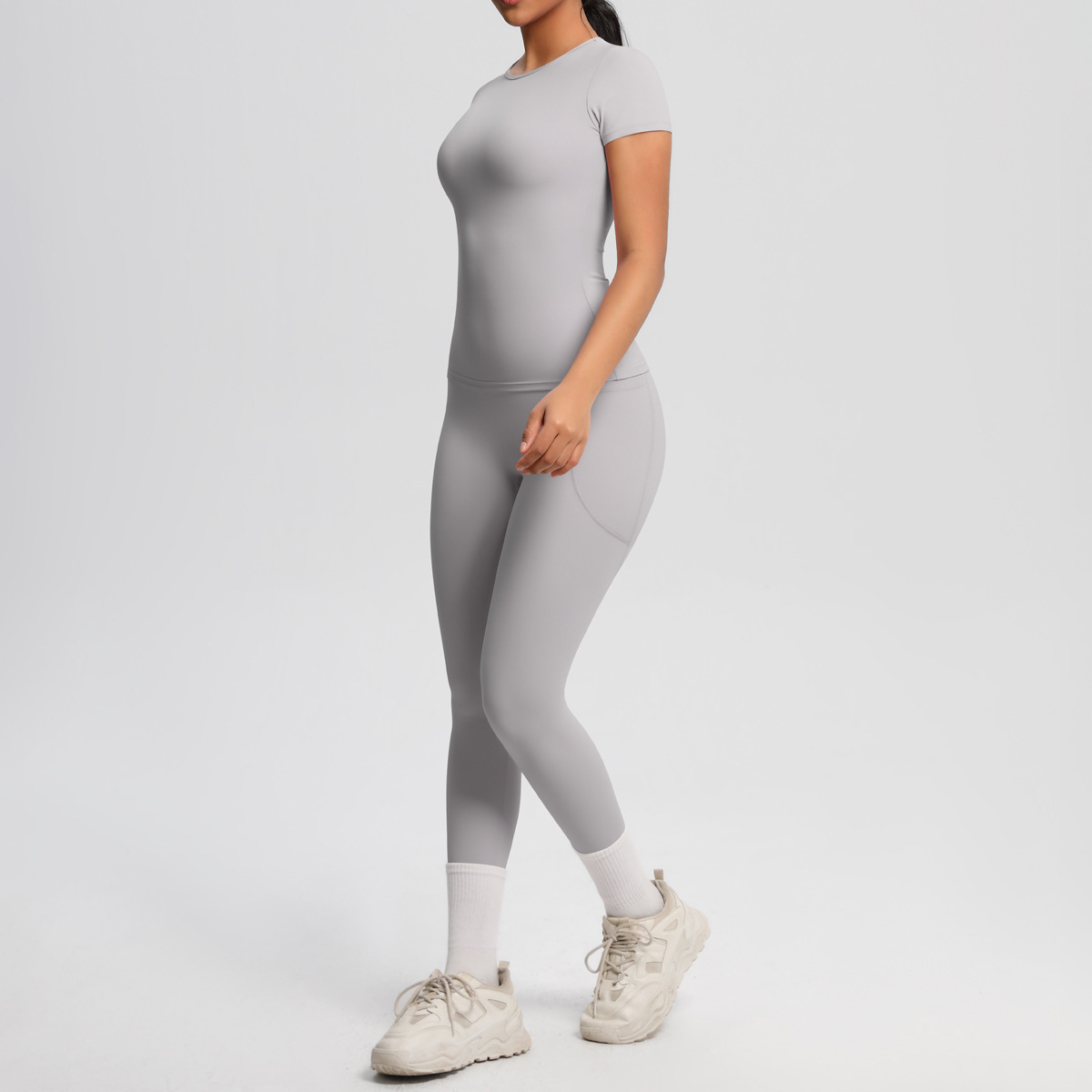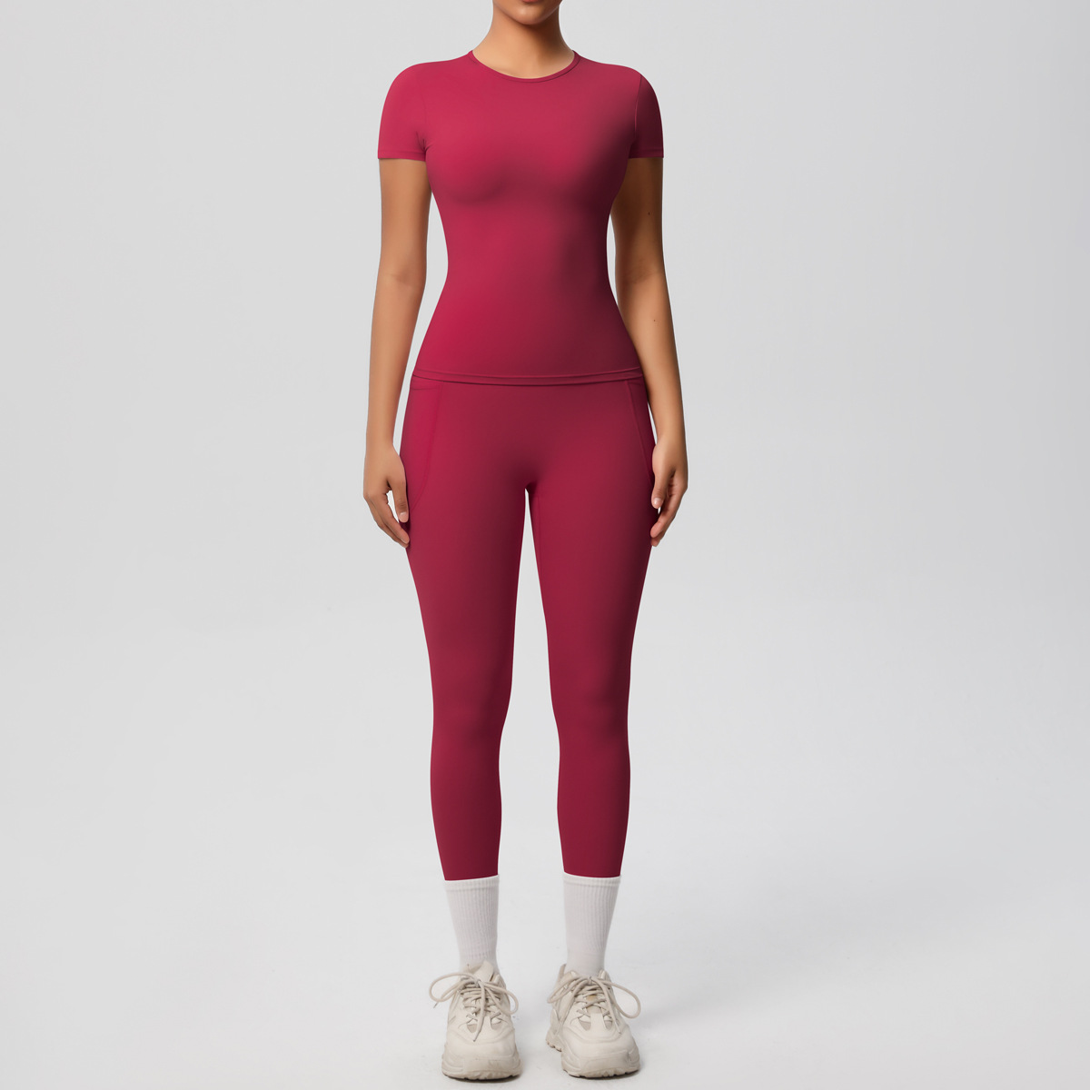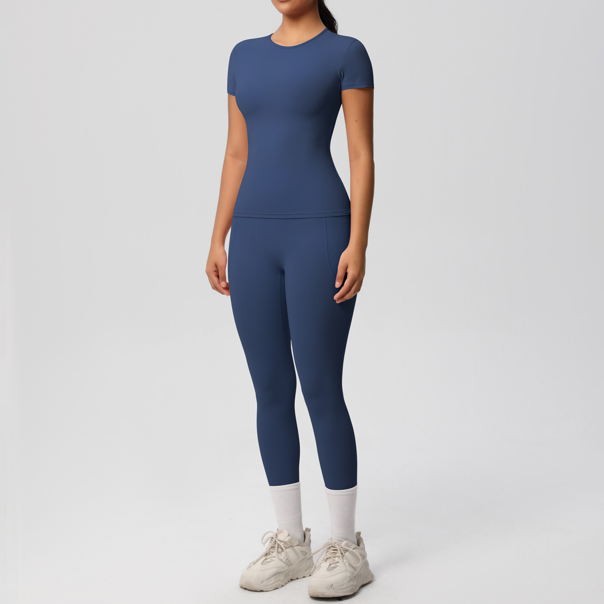 Solid Color Short Sleeve Skin Friendly Breathable Fitness Set
