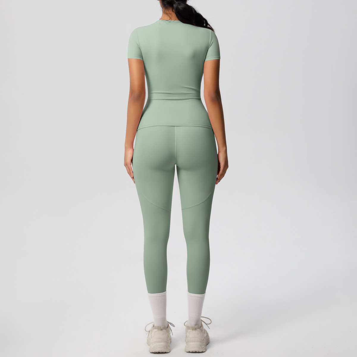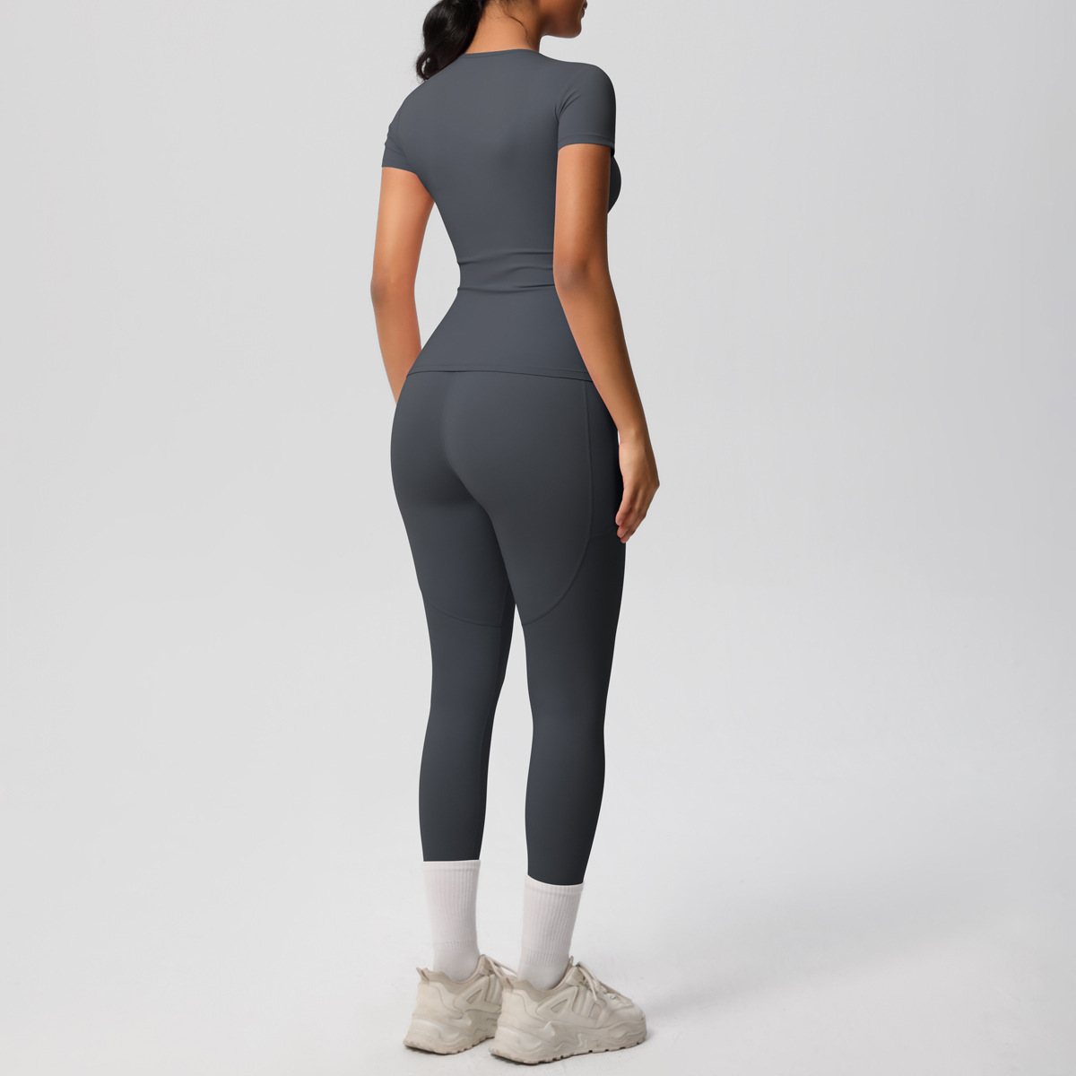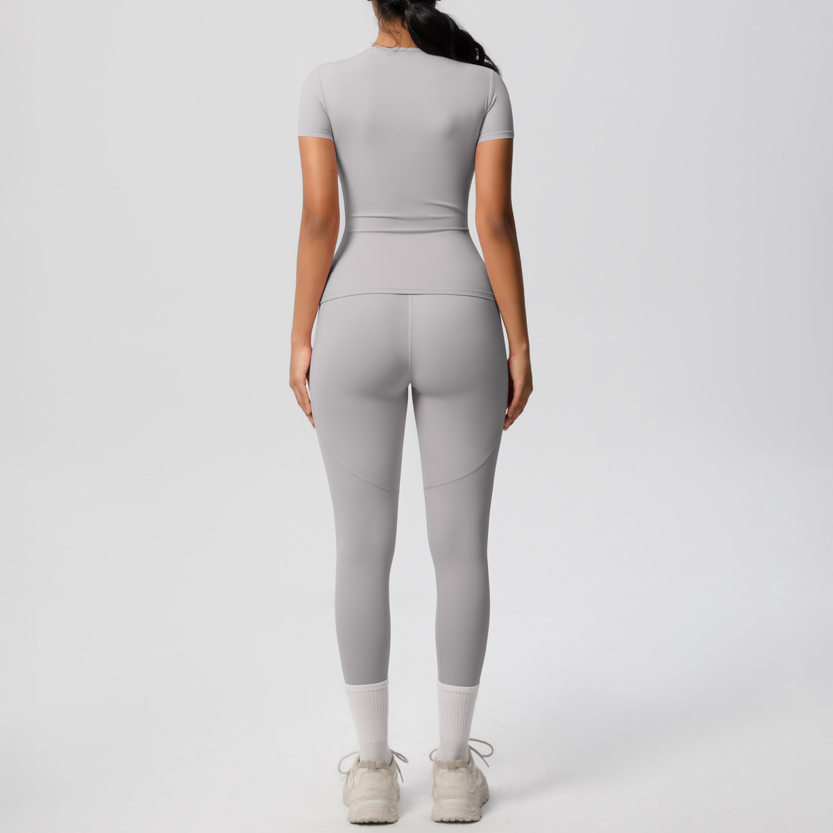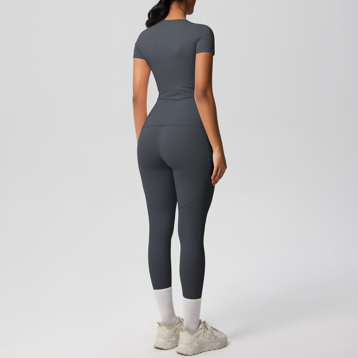 Solid Color Short Sleeve Skin Friendly Breathable Fitness Set