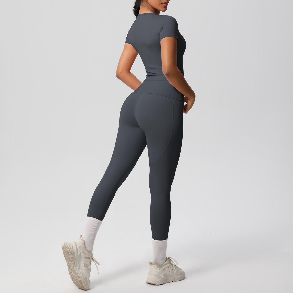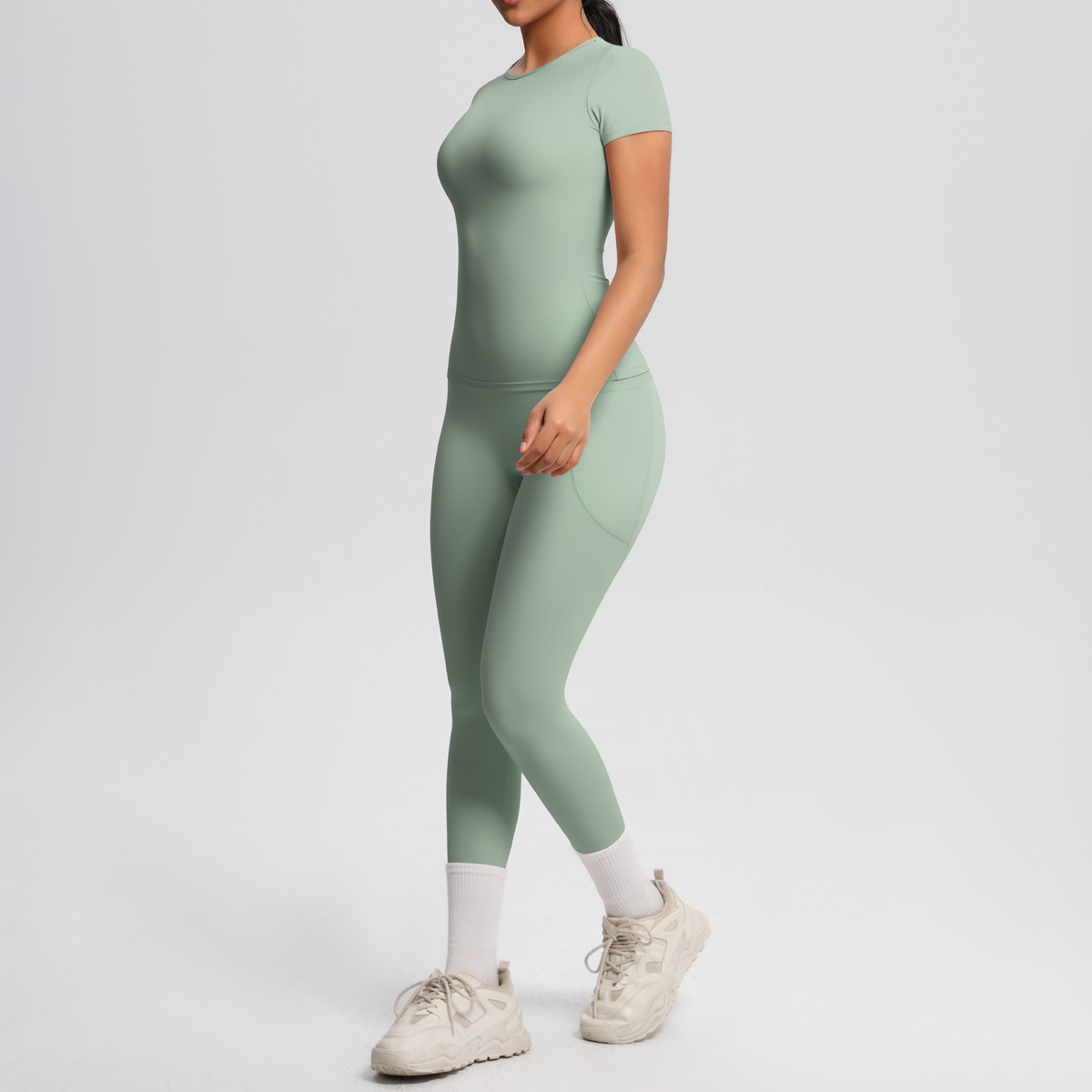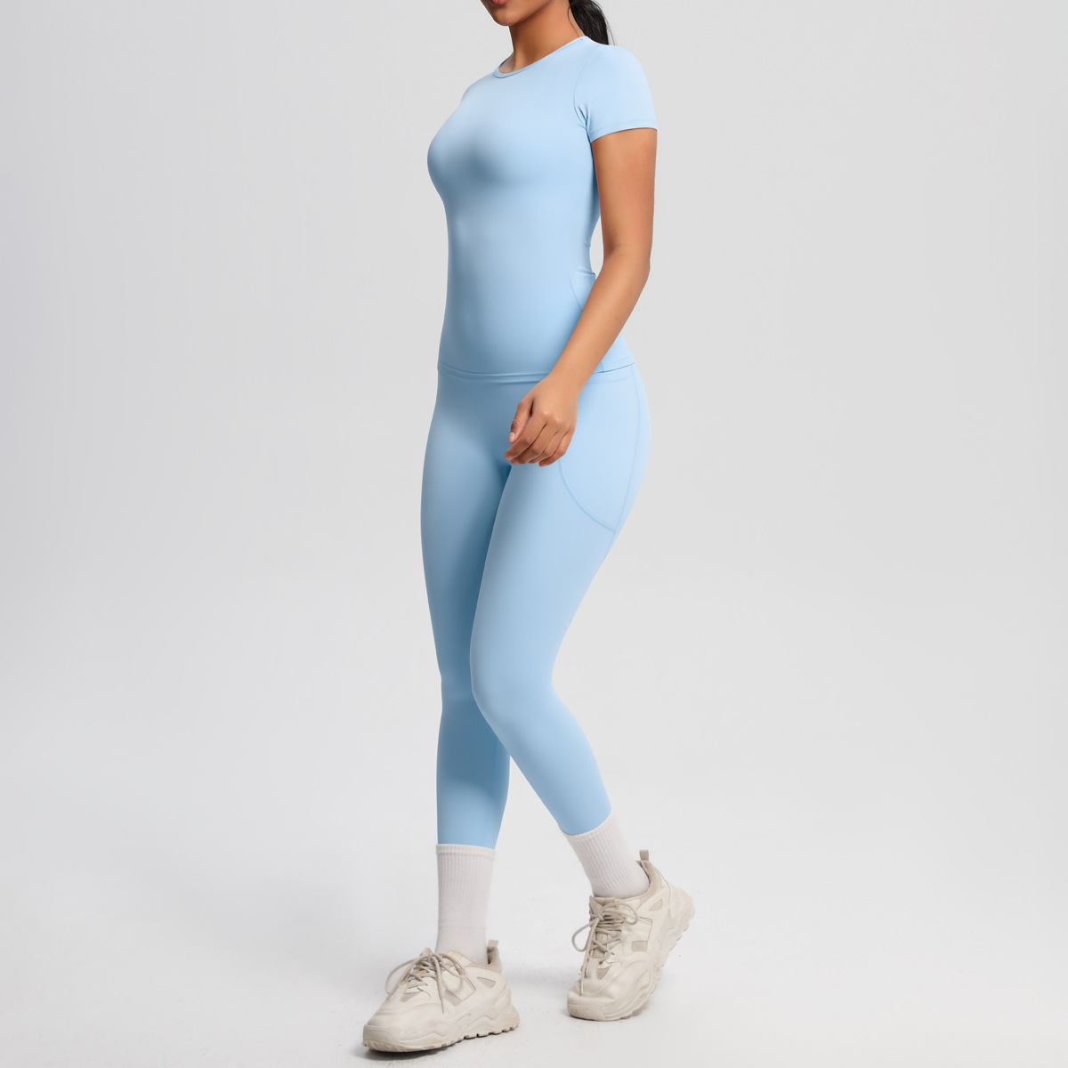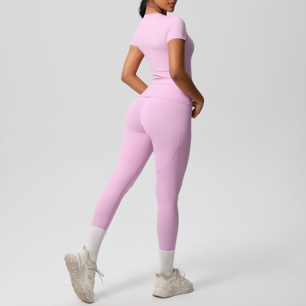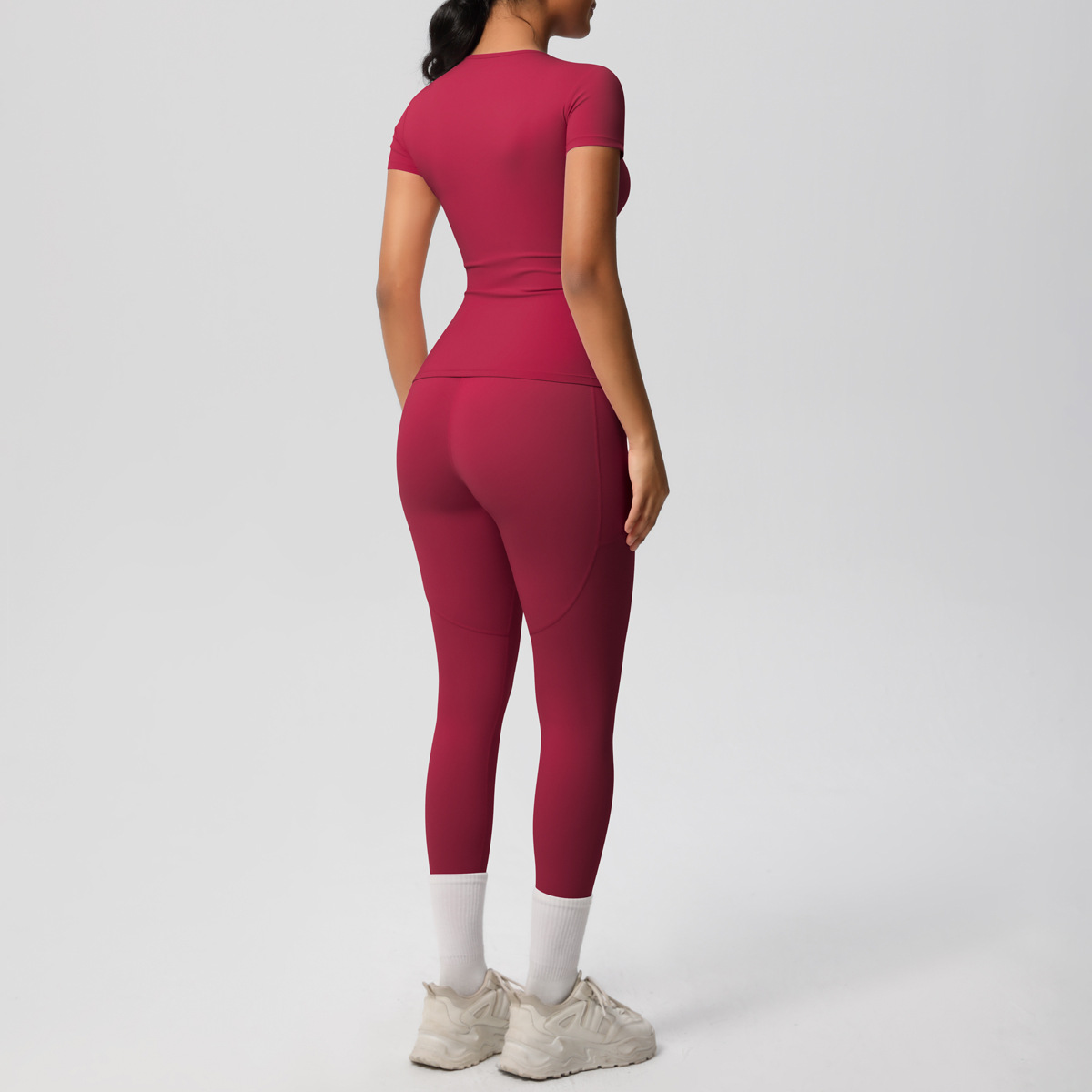 Solid Color Short Sleeve Skin Friendly Breathable Fitness Set