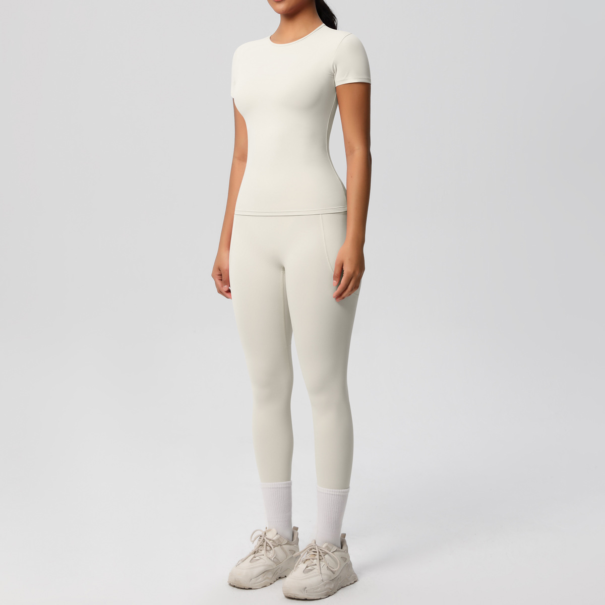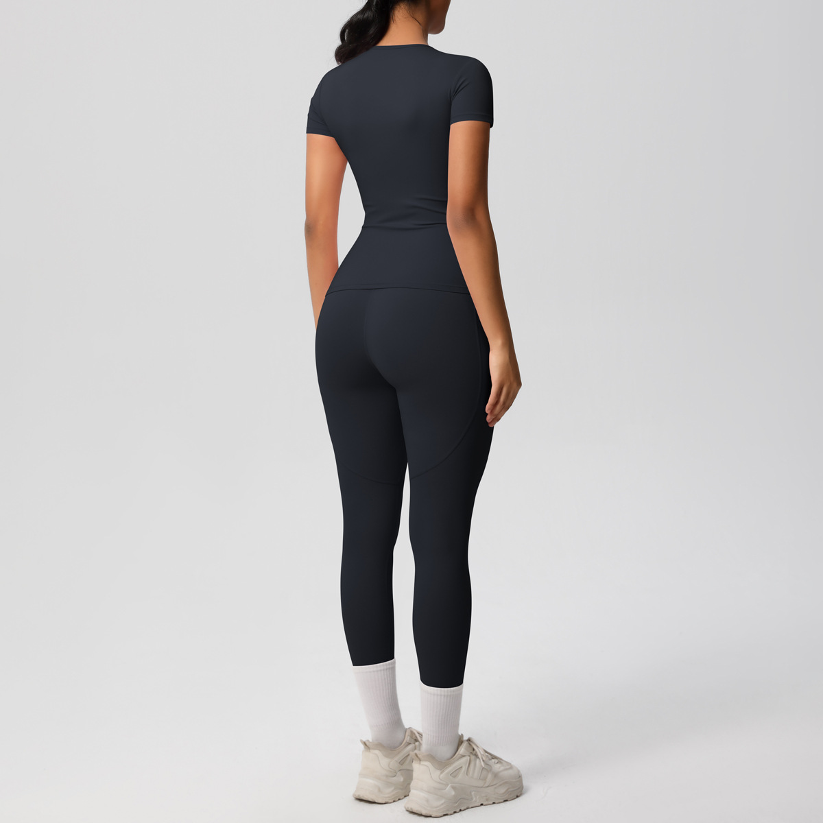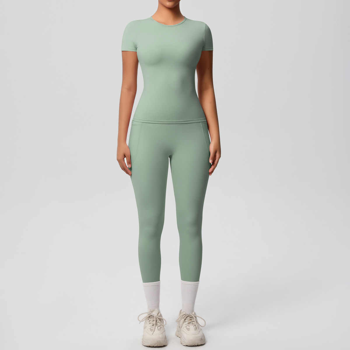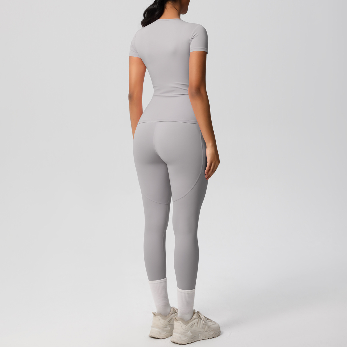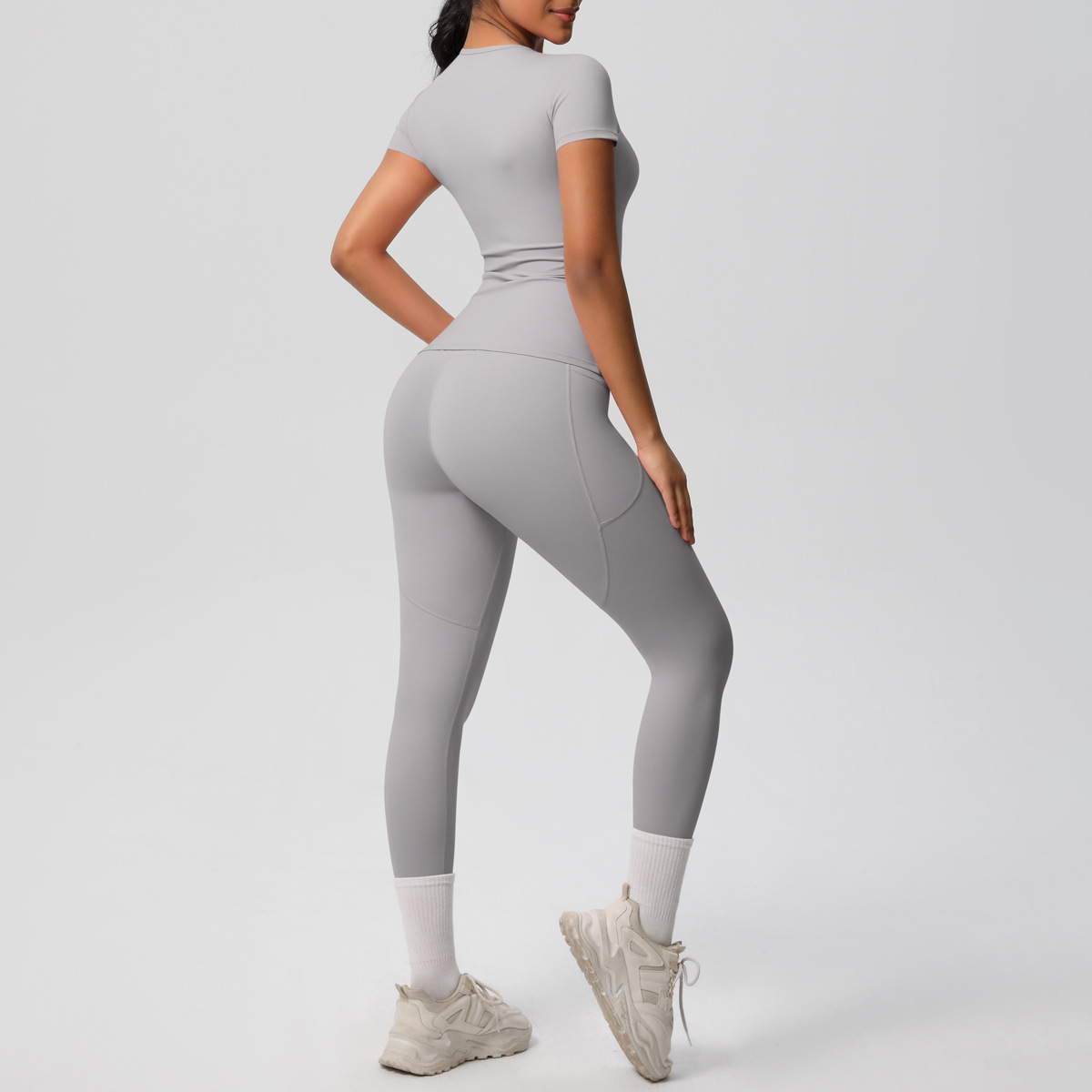 Solid Color Short Sleeve Skin Friendly Breathable Fitness Set