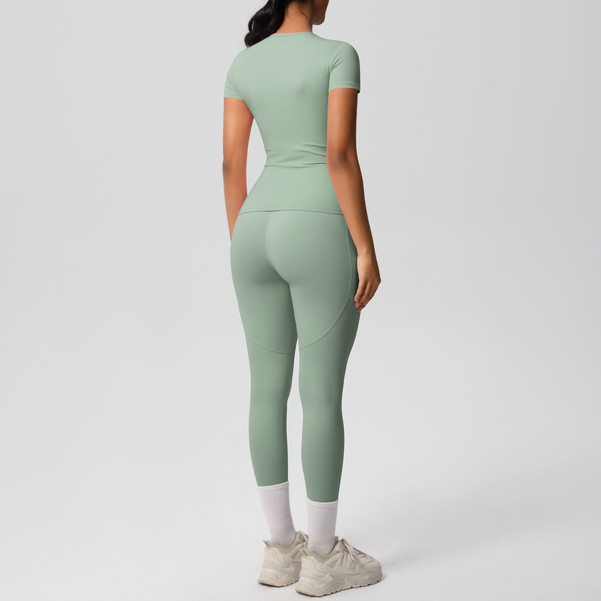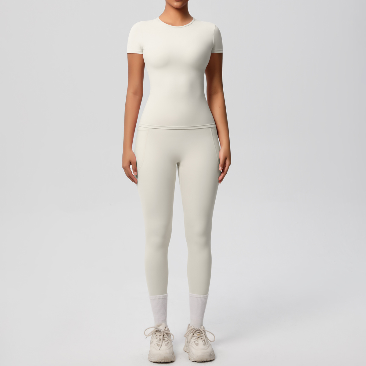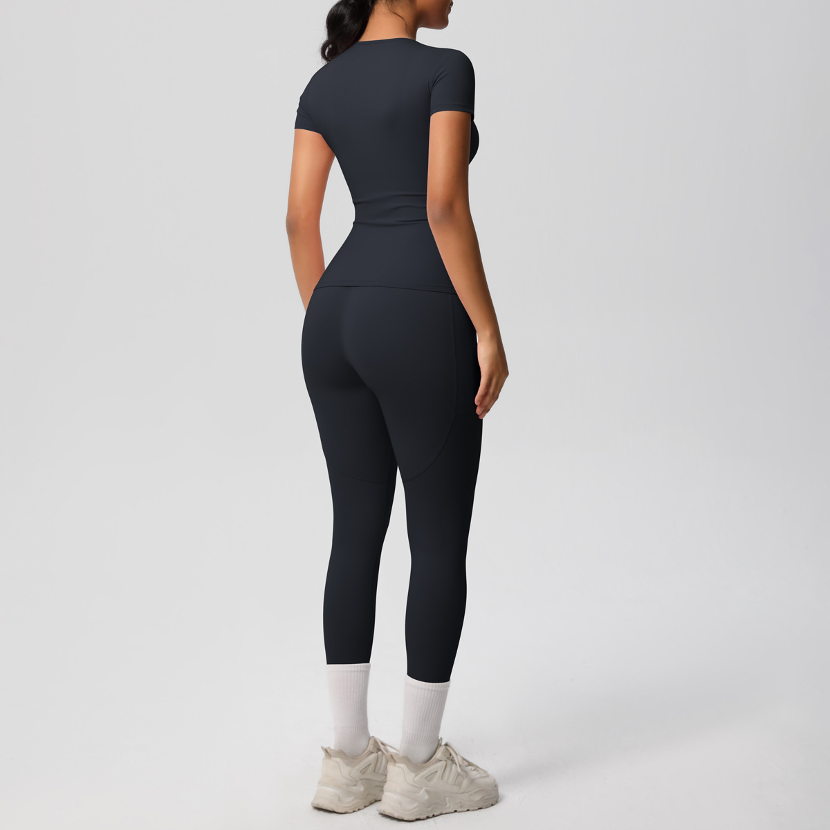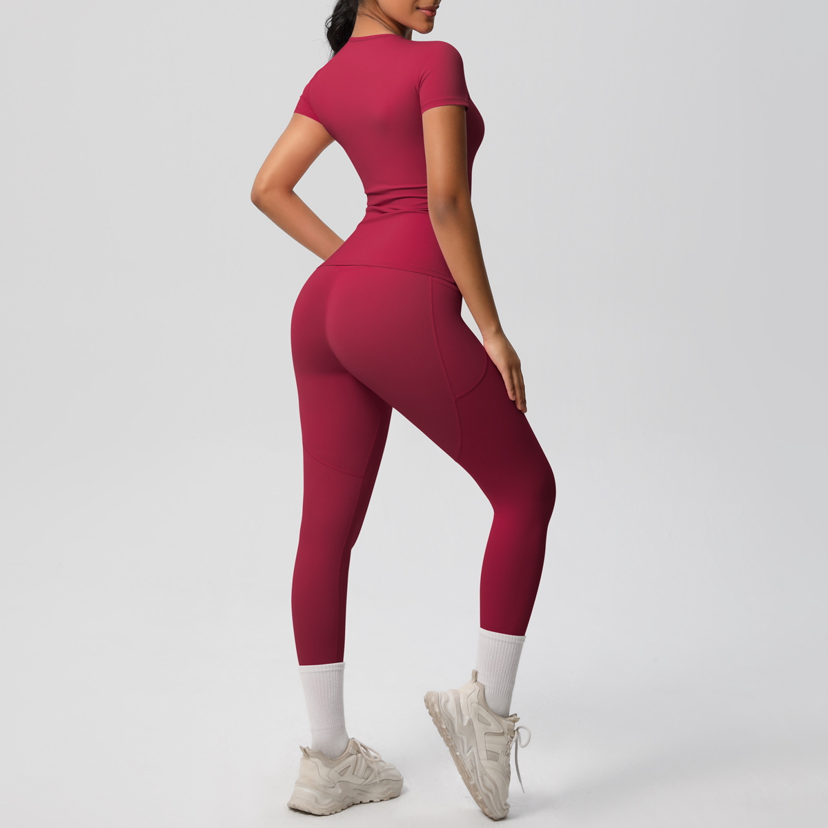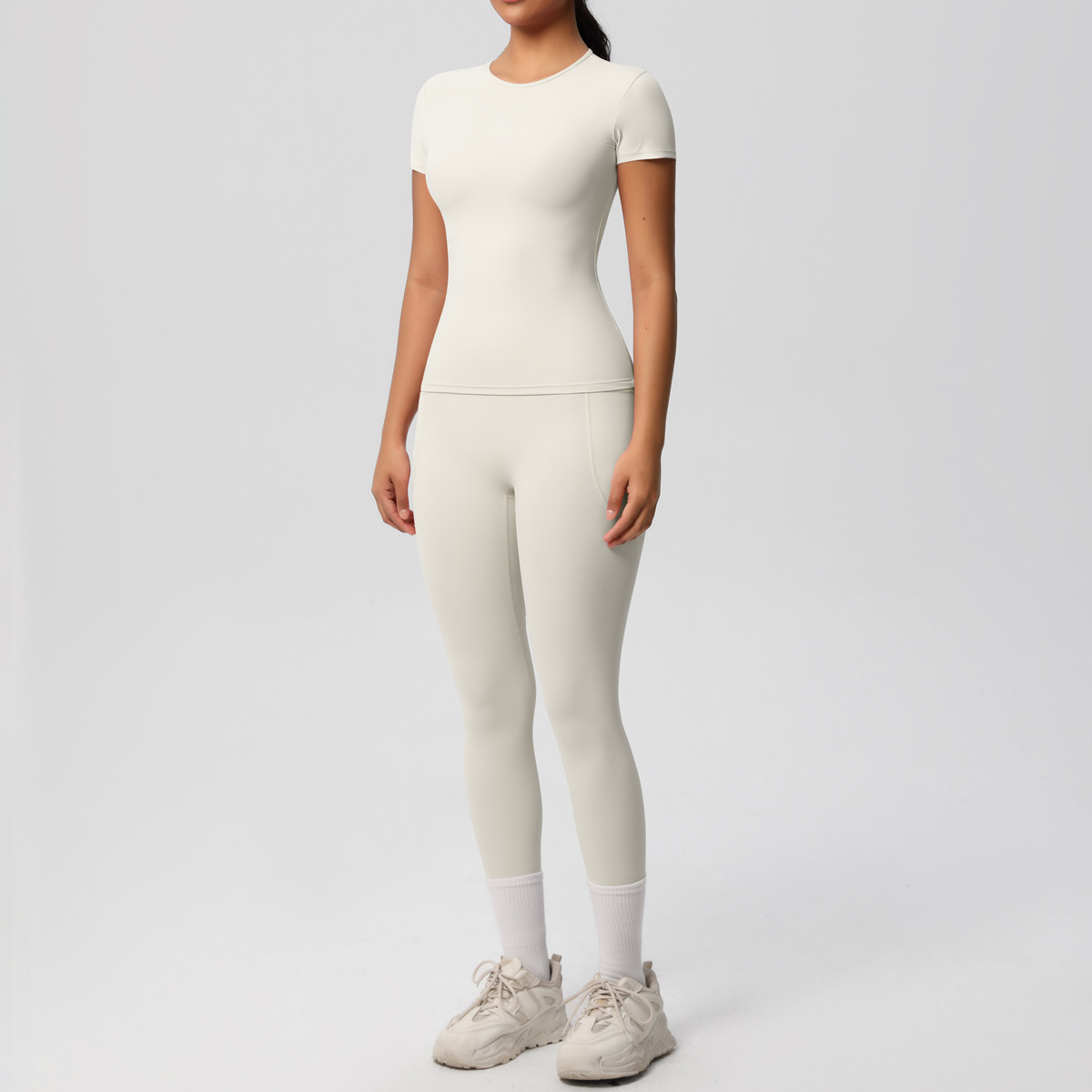 Solid Color Short Sleeve Skin Friendly Breathable Fitness Set