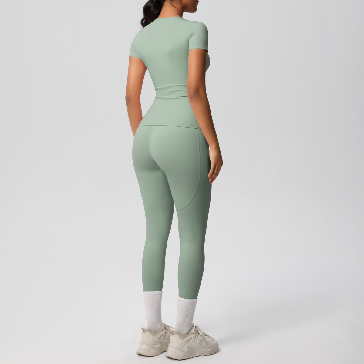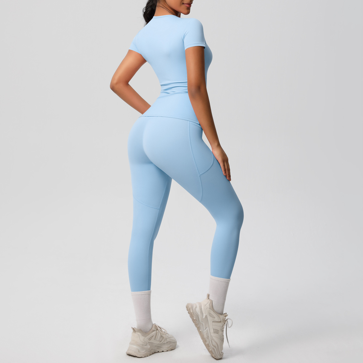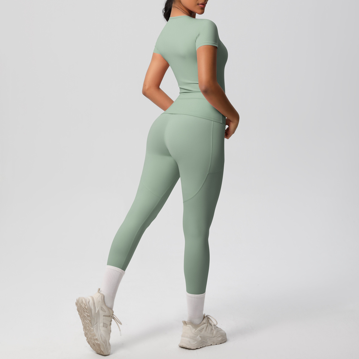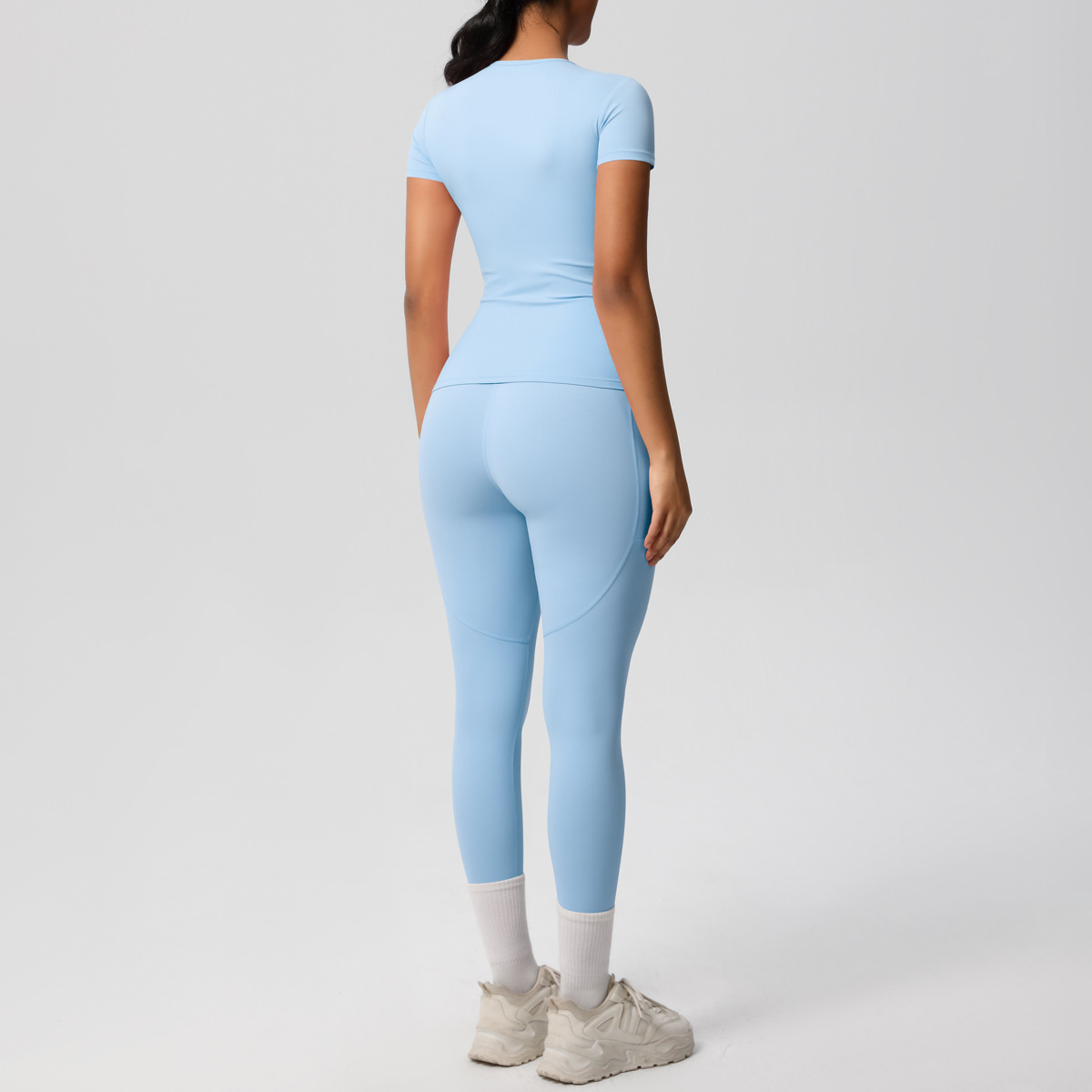 Solid Color Short Sleeve Skin Friendly Breathable Fitness Set