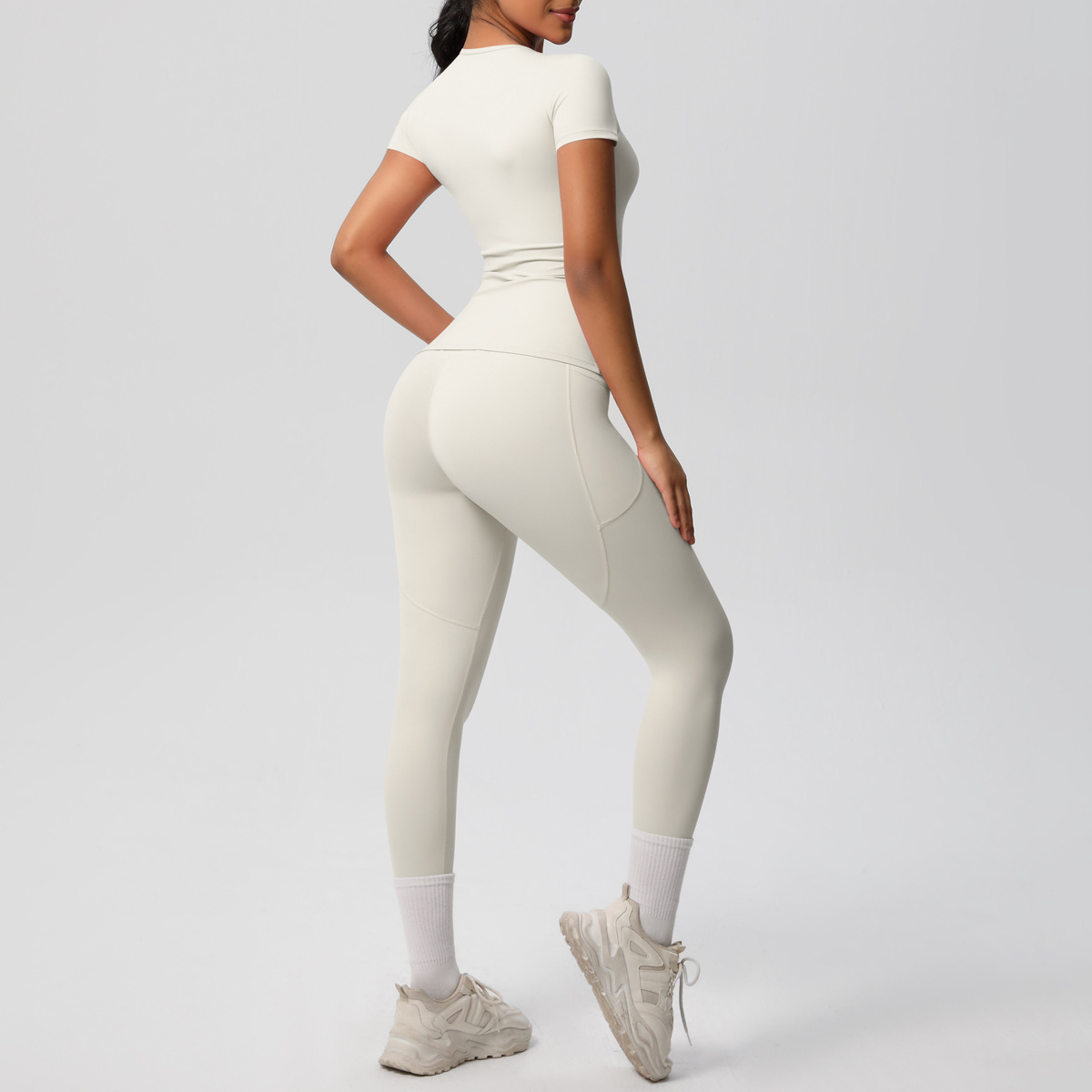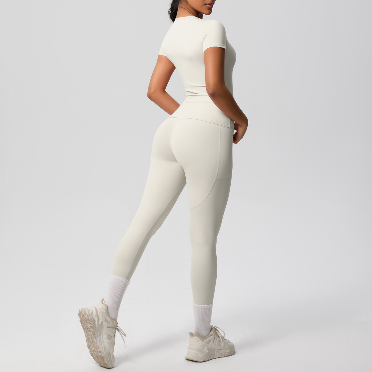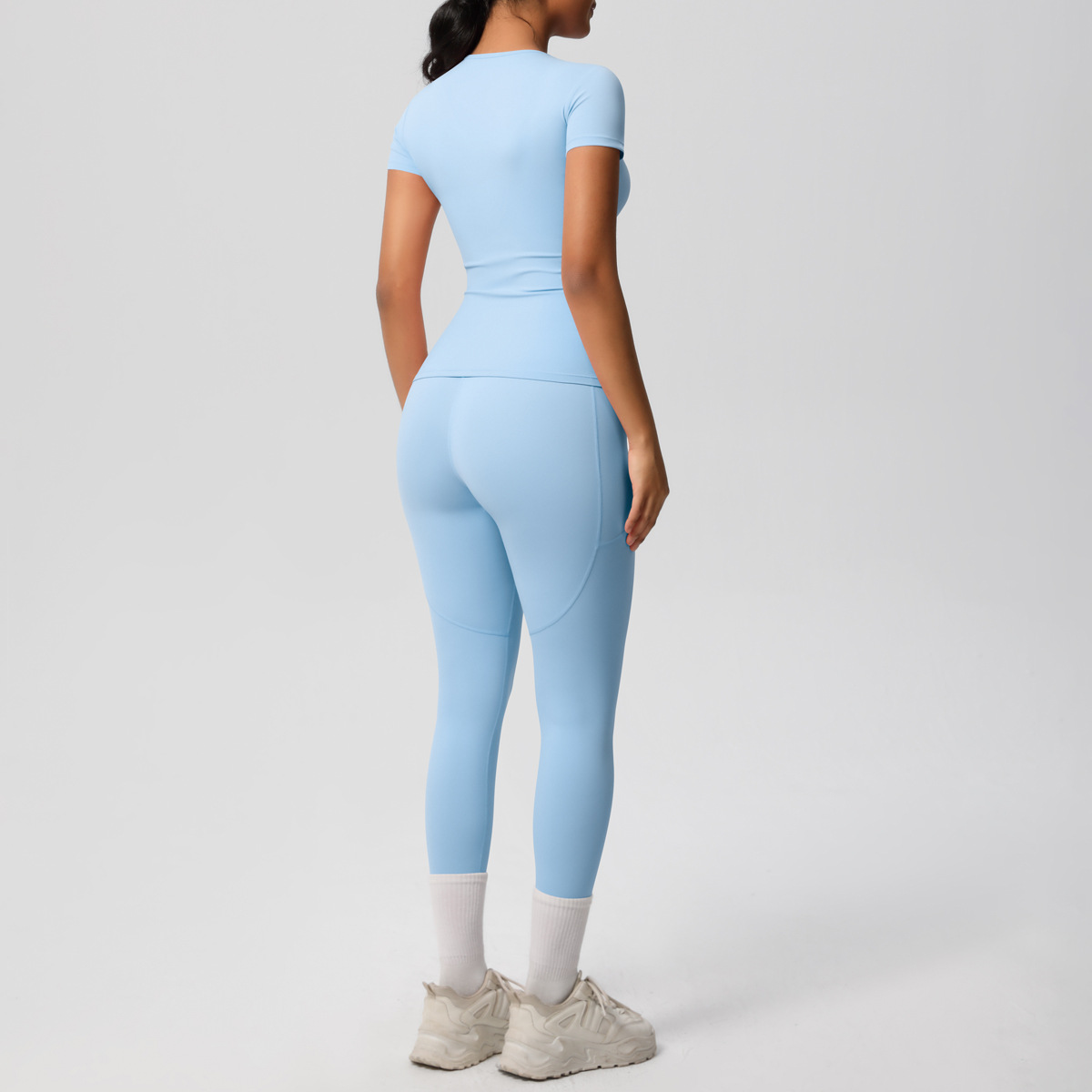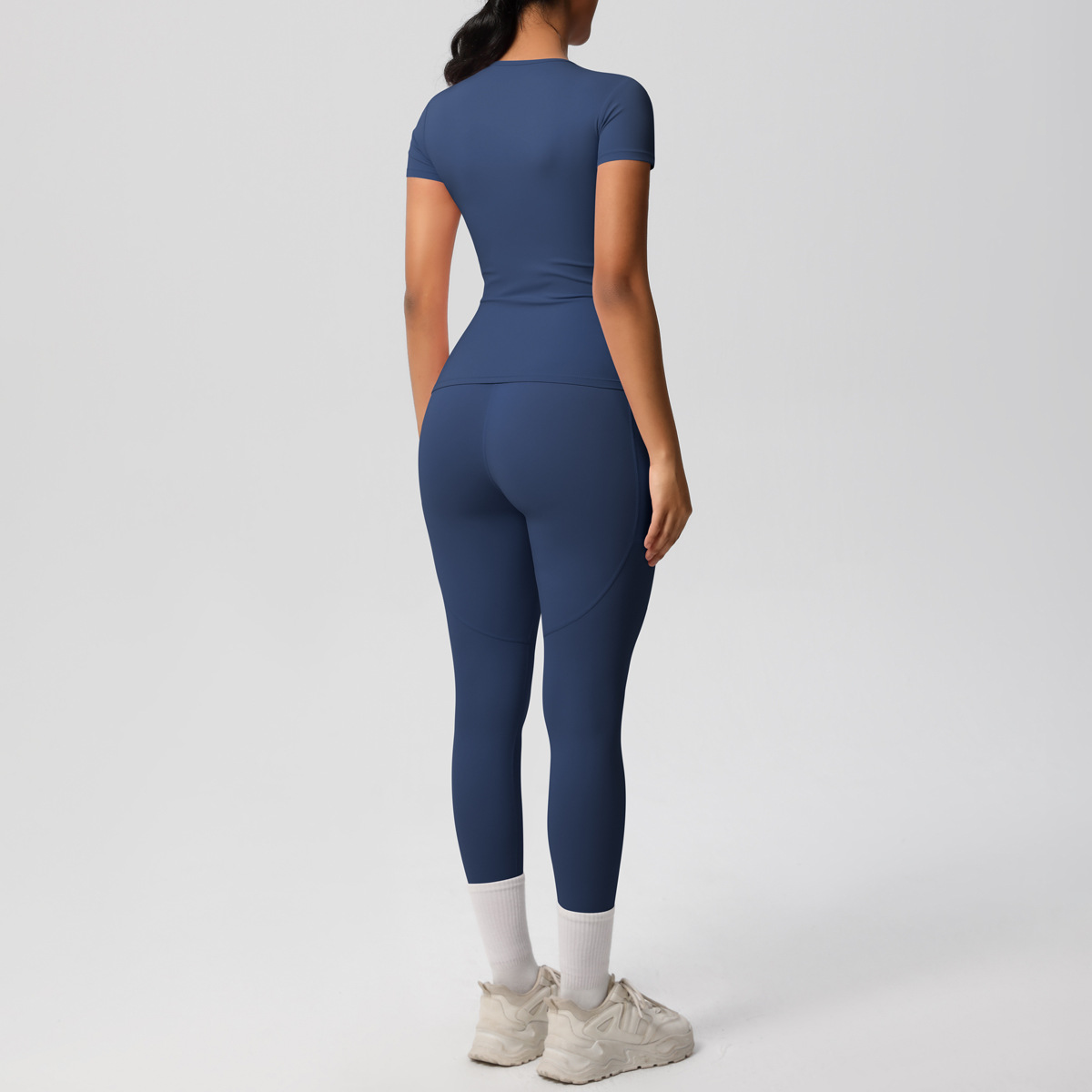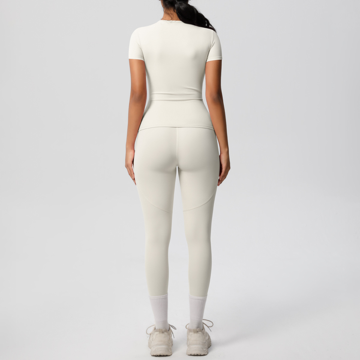 Solid Color Short Sleeve Skin Friendly Breathable Fitness Set