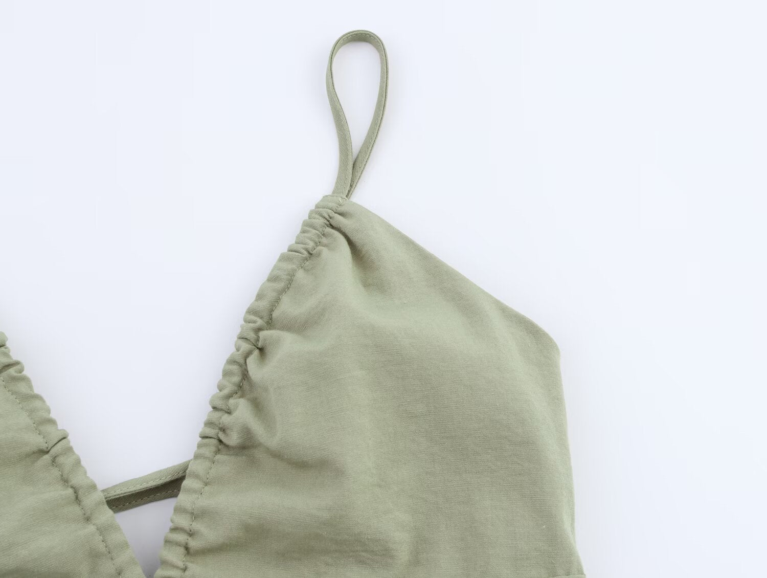 Turn heads this summer in this sexy slim-fit A-line midi dress. Made from soft polyester, this solid cami dress features a flattering V-neckline, backless design, lace-up details, a chic zipper, and a stylish split hem. Perfect for daily wear, this sleeveless ruched dress keeps you cool and confident all season long.