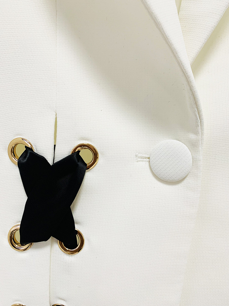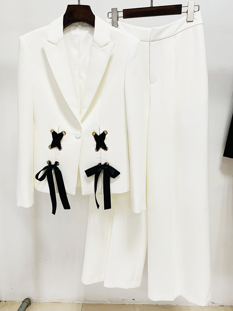 Star Ribbon Tie Blazer & Wide Leg Pant Set
