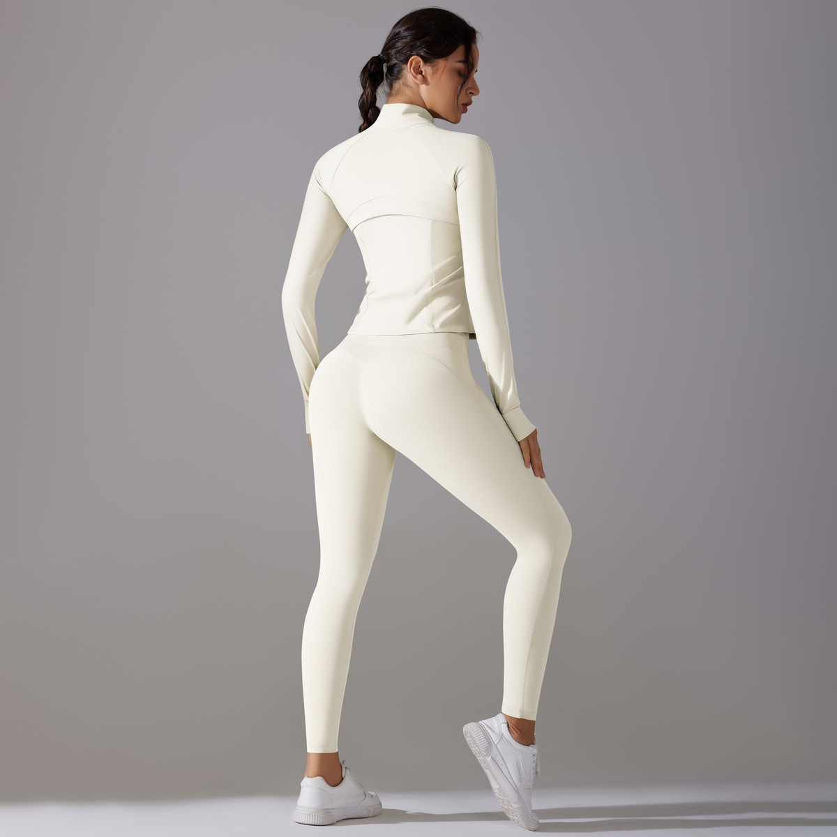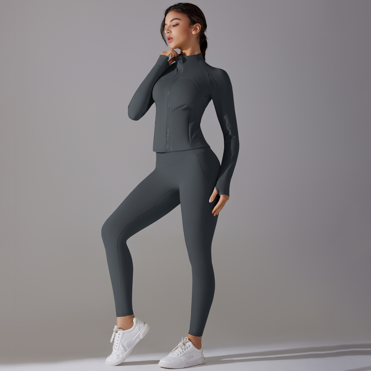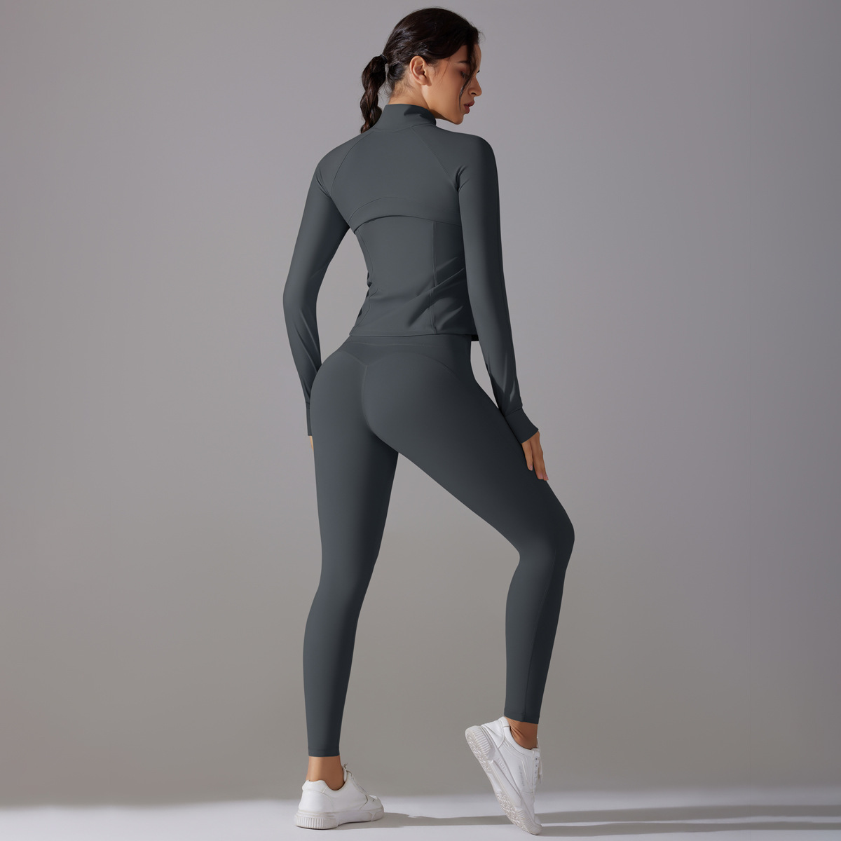 Trendy Push up Long Sleeve Solid Color Slim Elastic Zipper Workout Set