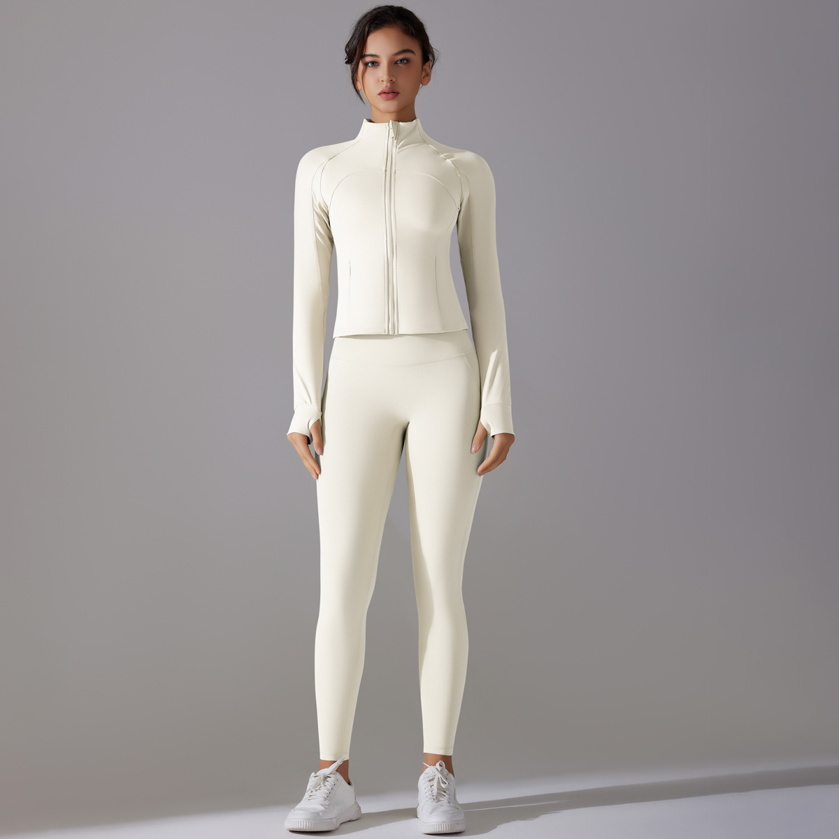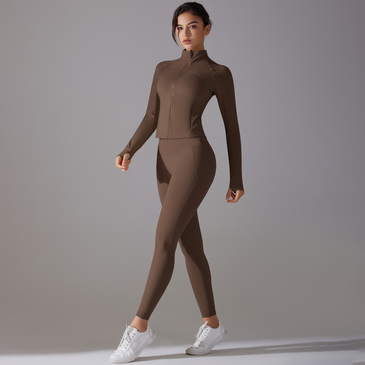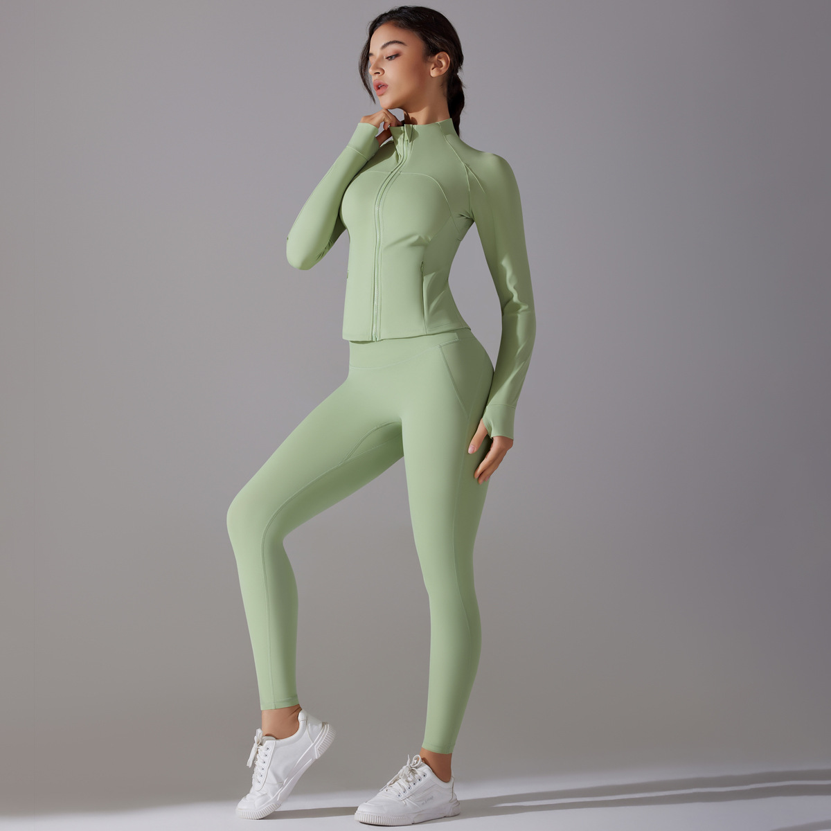 Trendy Push up Long Sleeve Solid Color Slim Elastic Zipper Workout Set