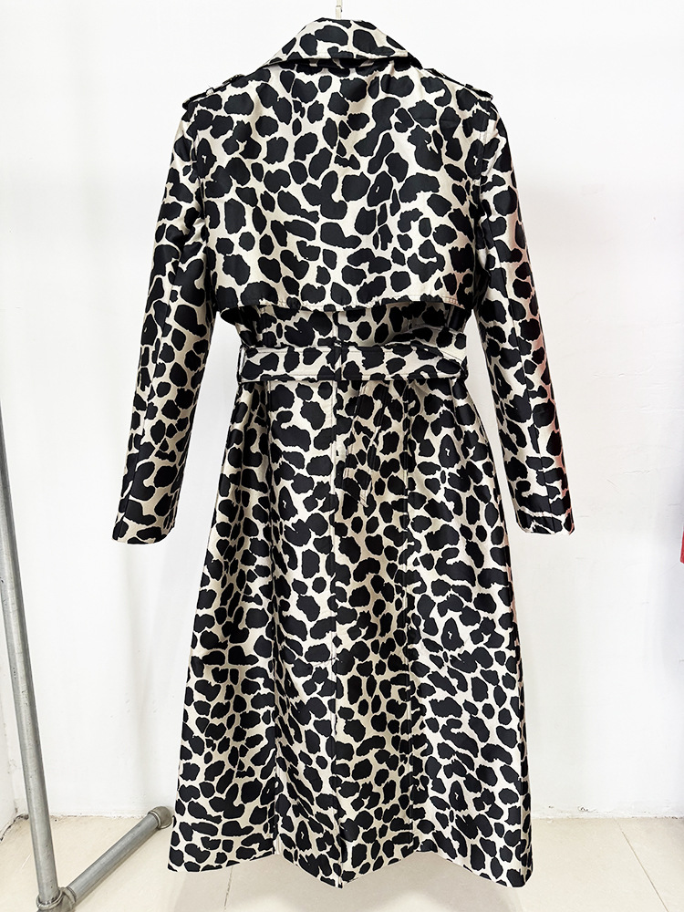 Winter Belted Leopard Jacquard Long Trench Coat