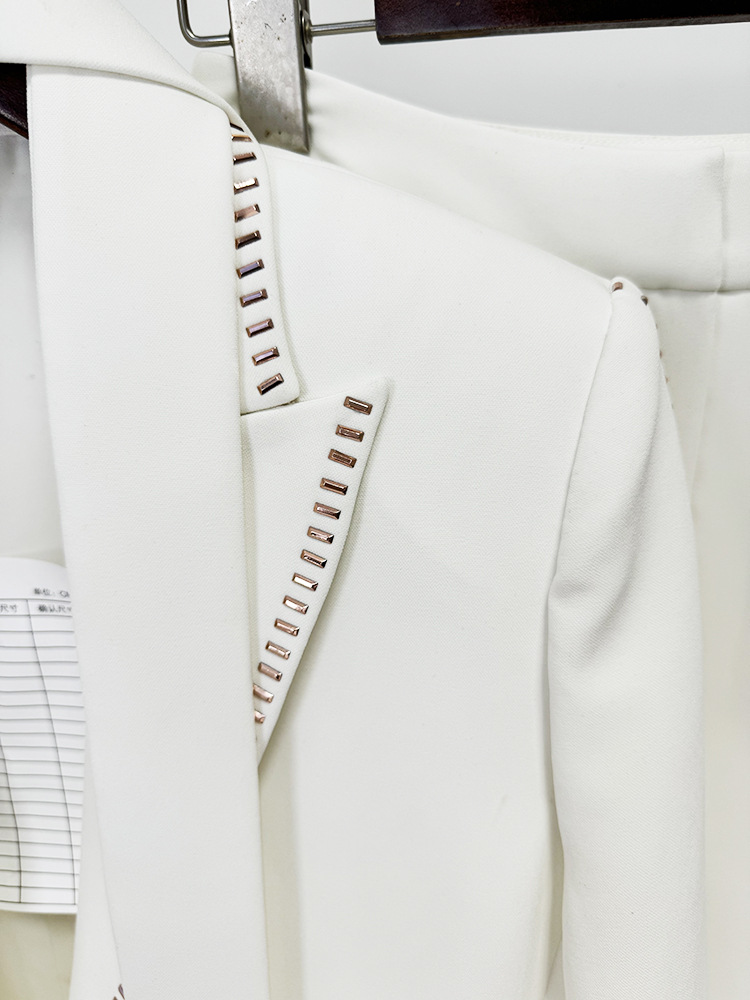 Women Two Piece Loose Blazer Set Scarf Drilling Trousers